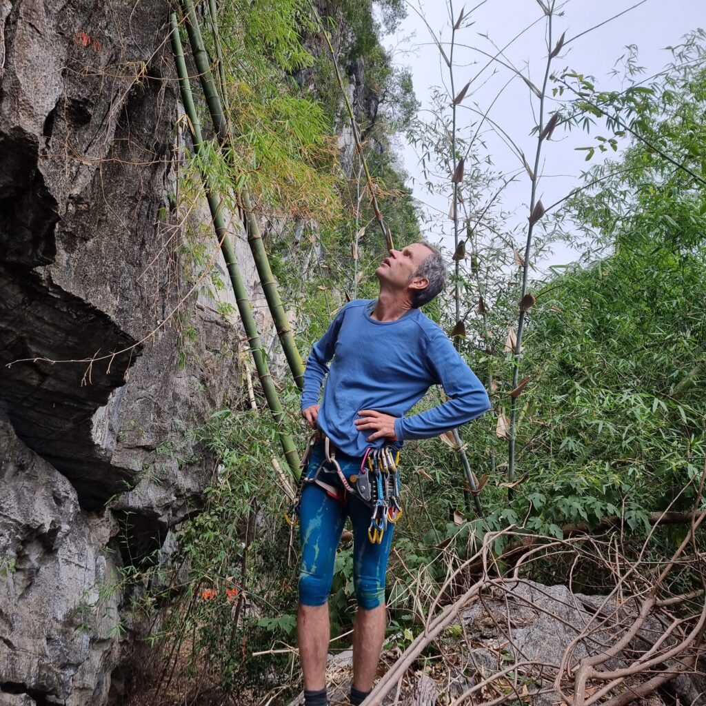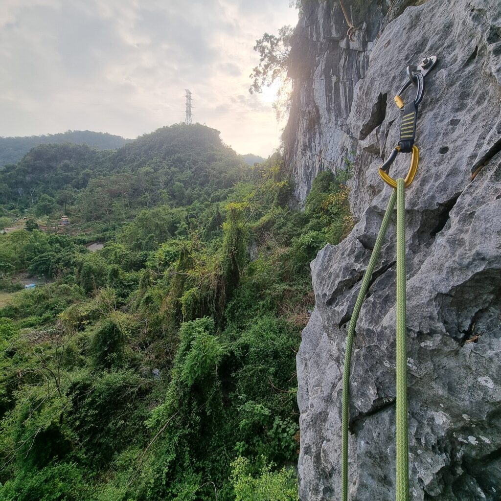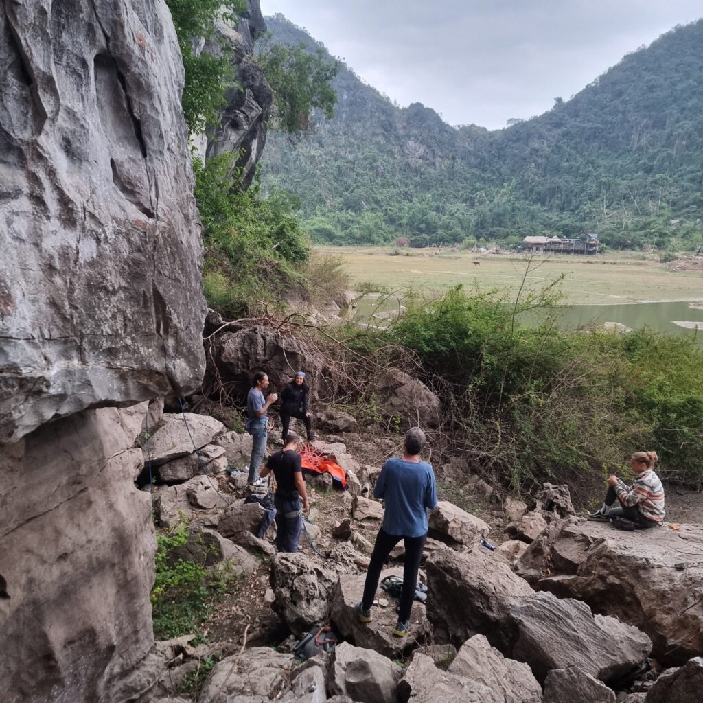 Auf der Bootstour haben wir Daniel aus Chile kennengelernt, der uns in die ganz schön internationale Kletter-Community in Cat Ba einführt, und so landen wir heute nach Materialausleihstopp im Schmetterlingstal.