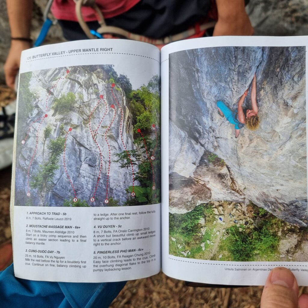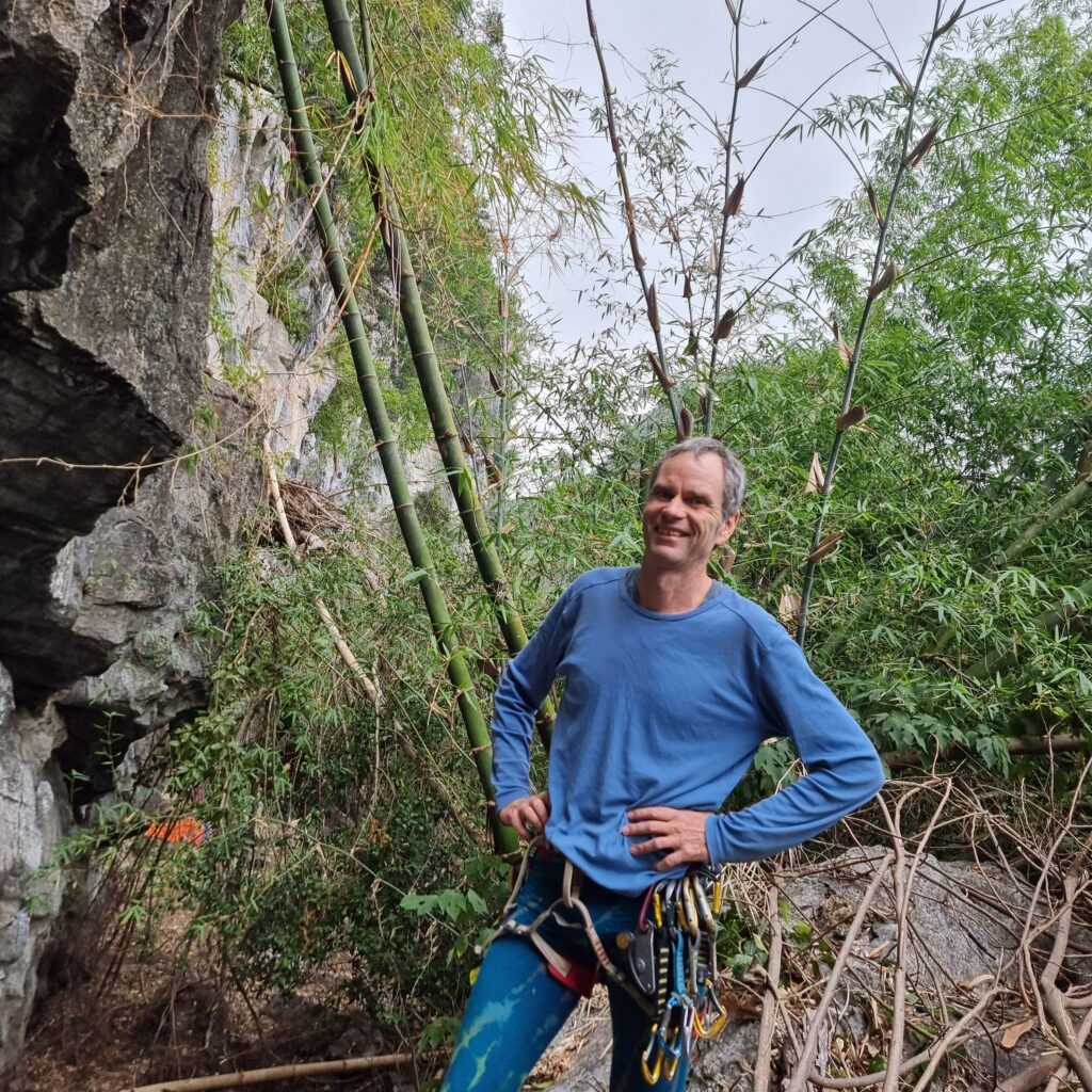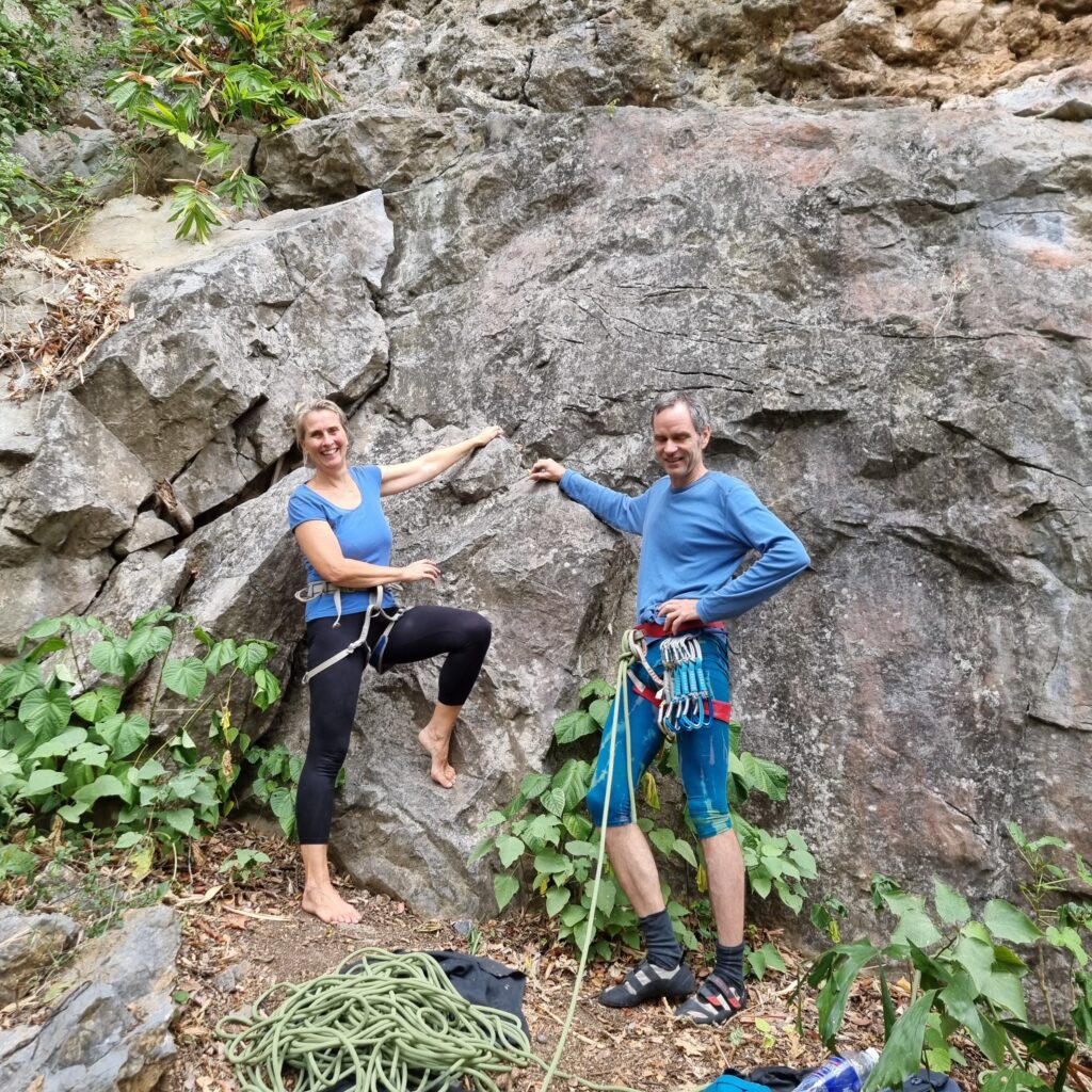 Auf der Bootstour haben wir Daniel aus Chile kennengelernt, der uns in die ganz schön internationale Kletter-Community in Cat Ba einführt, und so landen wir heute nach Materialausleihstopp im Schmetterlingstal.