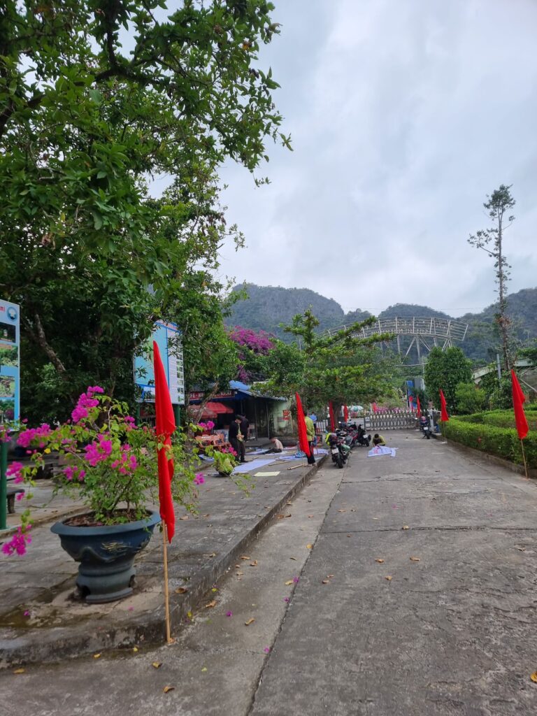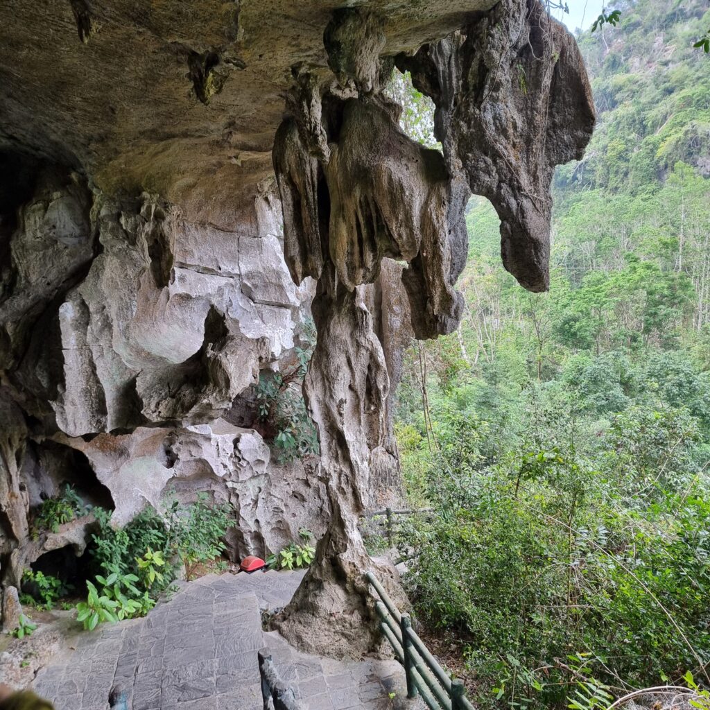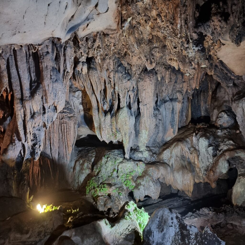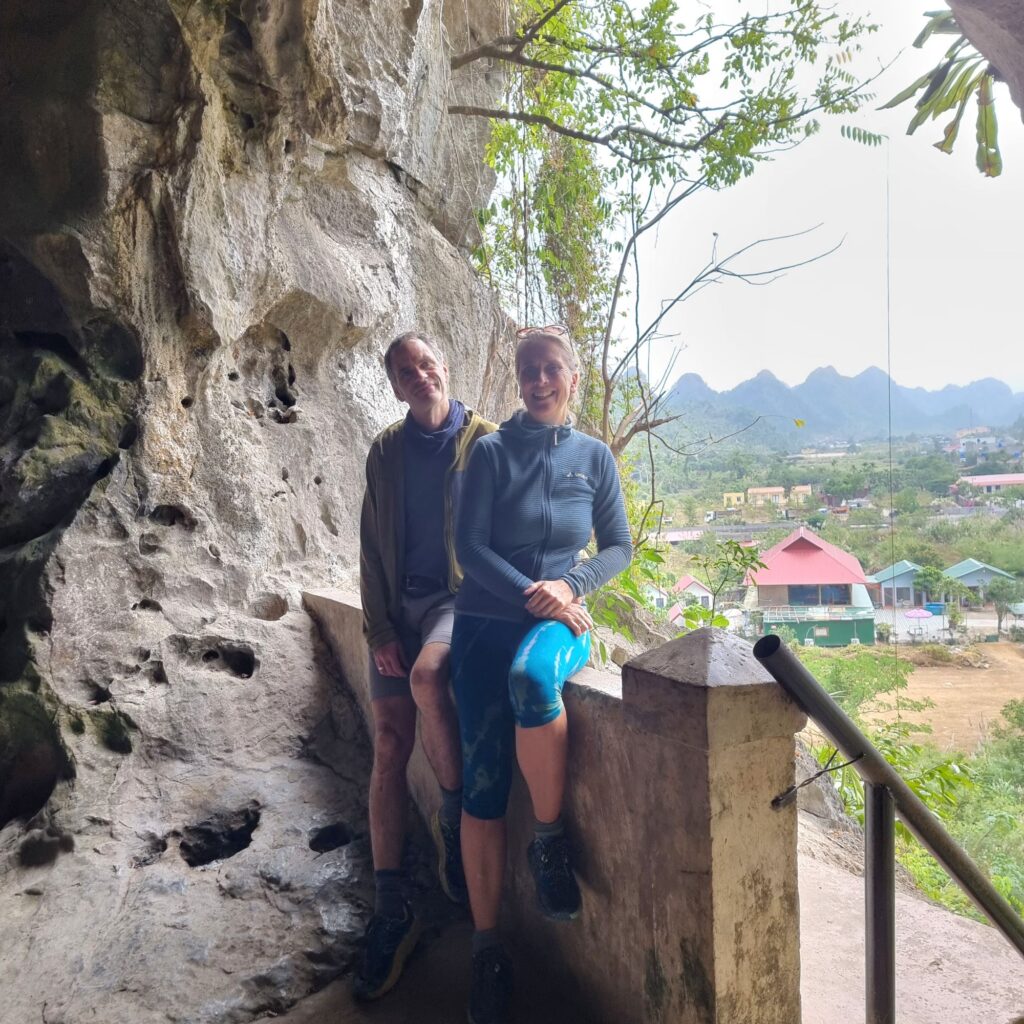 Zwei Karsthöhlen, die durch Wasser geformt sind, liegen gleich neben unserer Unterkunft, eine davon wurde im Krieg seit 1963 als Lazarett betrieben – Onkel Ho Chi Minh war auch hier zur Eröffnung. Ganz ungewohnt, in eine Höhle zu gehen und es ist warm drin!
