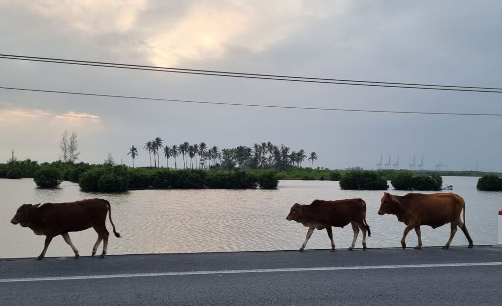 Wir fahren die Küstenstrasse zurück, hier sieht man gut, wie der Monsun im September gewütet hat, und noch kurz bei der Rekordseilbahn vorbei (188m hohe Pfeiler, zum Festland)