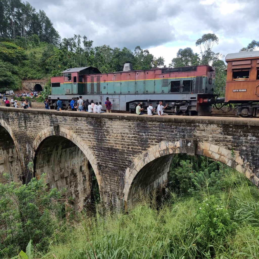 Inzwischen sind wir in den Bergen bei Ella angekommen. Bei unserer heutigen Wanderung zur 9 Arch Bridge kam prompt ein Sonderzug und hielt auf der Brücke. Na dann, einfach aufspringen und die Details später klären!