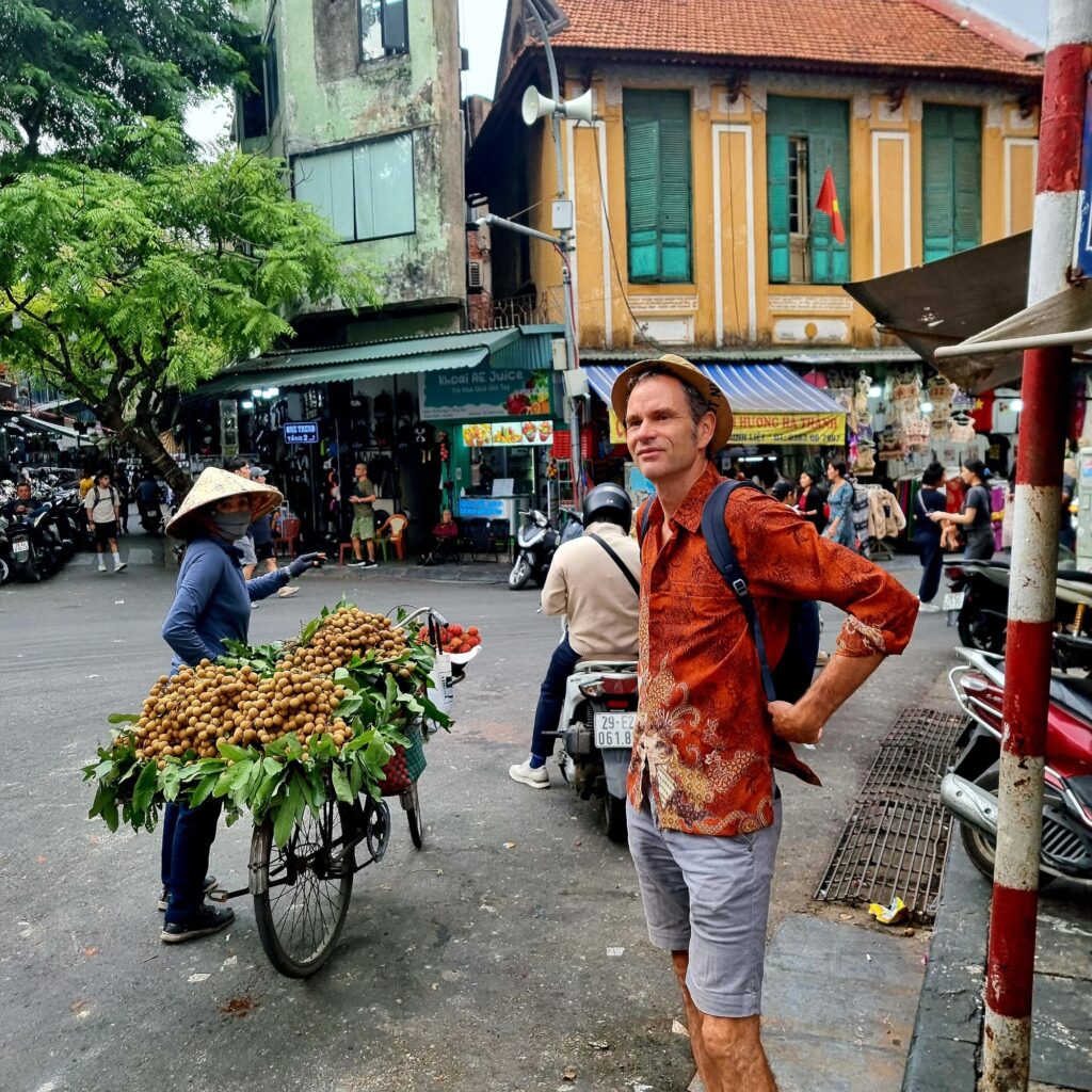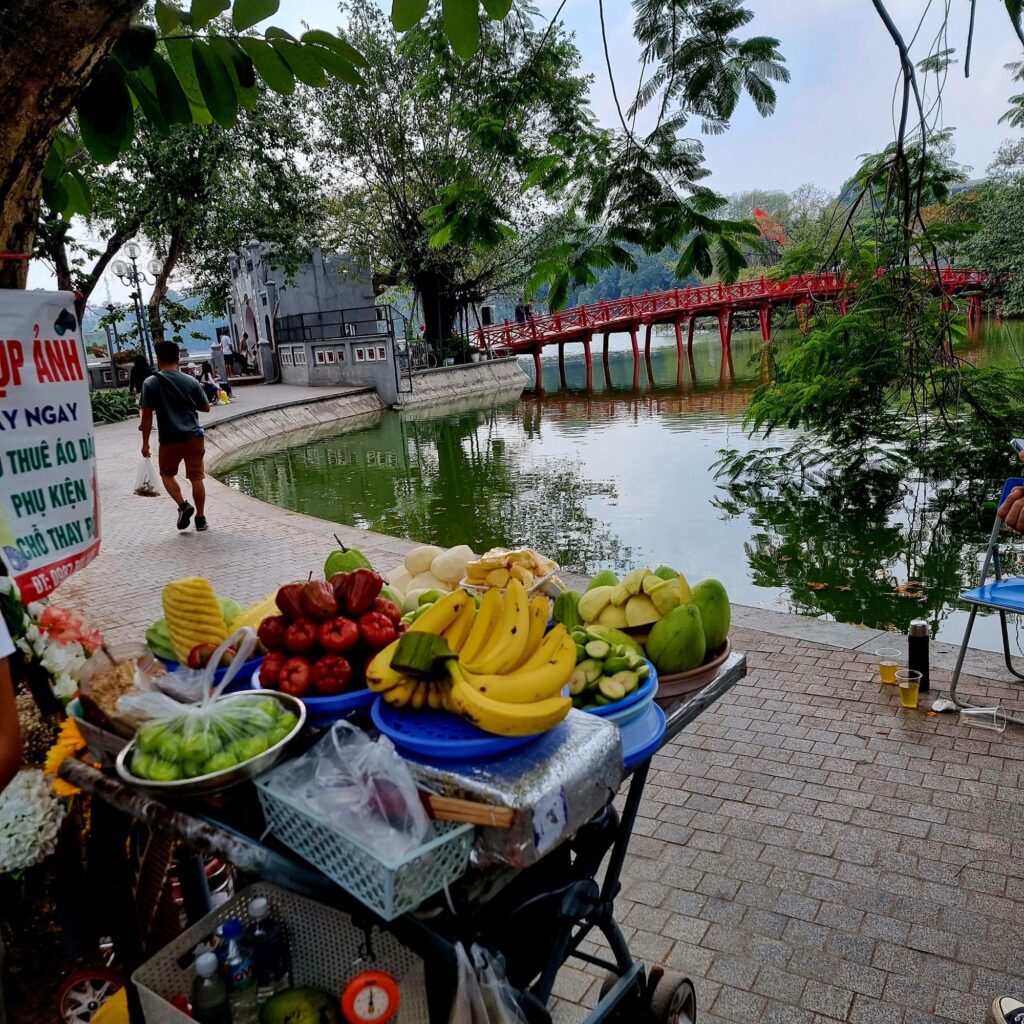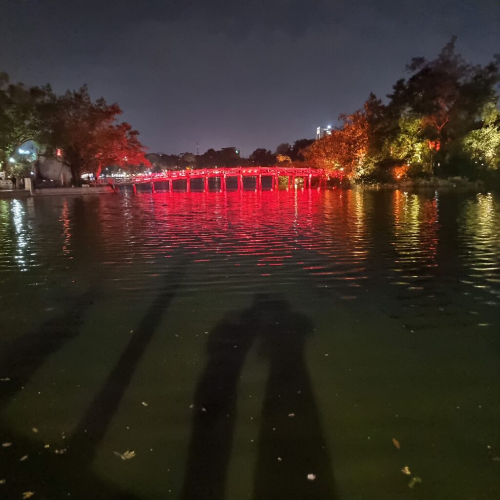 Am Abend ist hier echt was los, es ist schon abenteuerlich, bis zum Wasserpuppentheater zu kommen, für das wir Tickets haben, einer fährt Mirko halb über den Fuss…nochmal gutgegangen, meist klappt es ja, einfach die Hand vorzuhalten und mitten durch den Verkehr über die Strasse zu kommen.