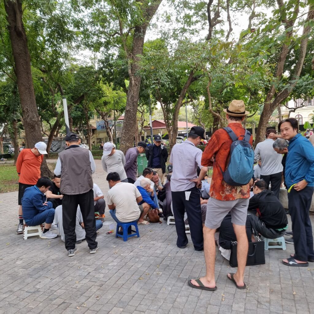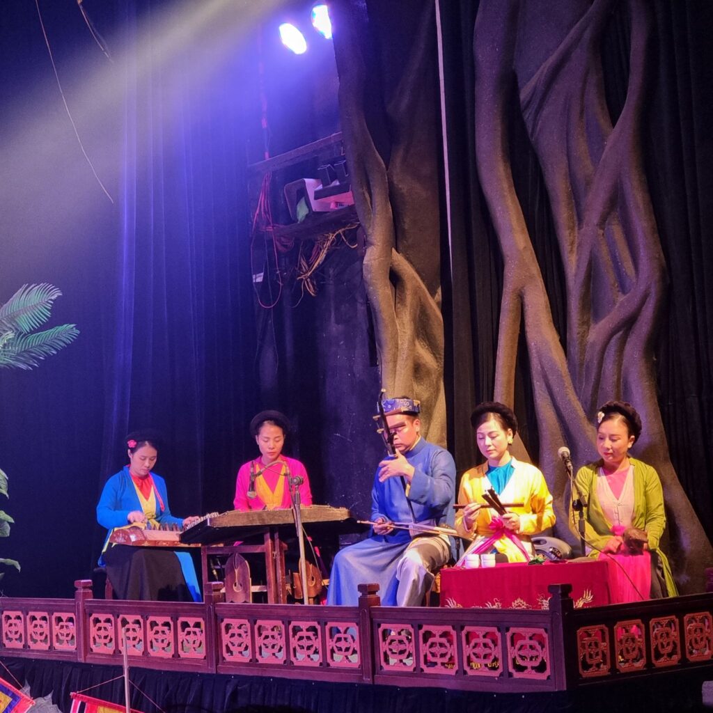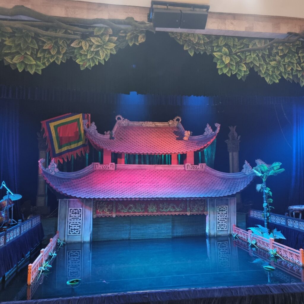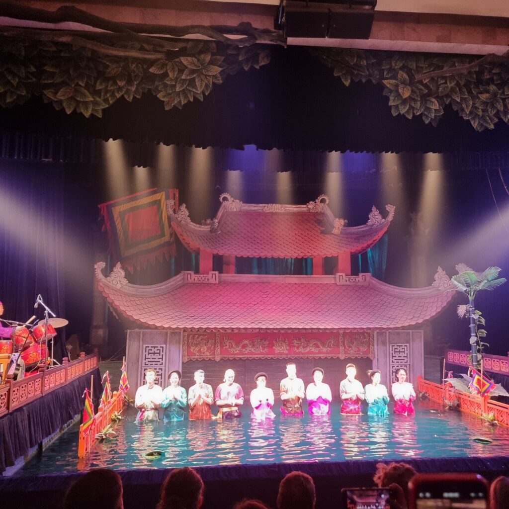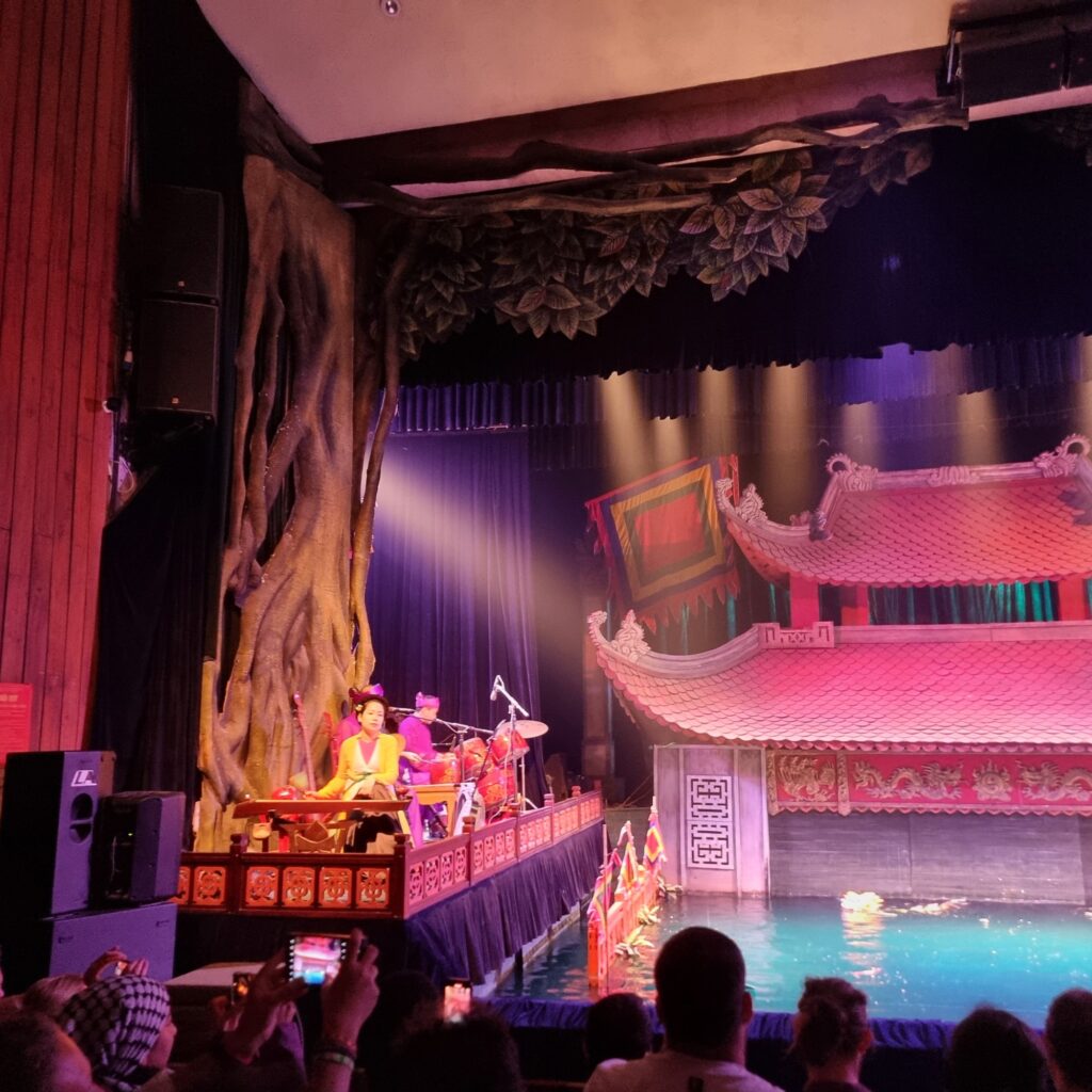 Ein herrlicher Tagesabschluss mit traditioneller Musik und Künstlern, die hinterm Vorhang die ganze Zeit im Wasser stehen und ihre Puppen an Stangen im Wasser bewegen. Das einzig Skurille: der Sprecher vom Audioguide hatte einen Dialekt, der ans Politbüro erinnerte….