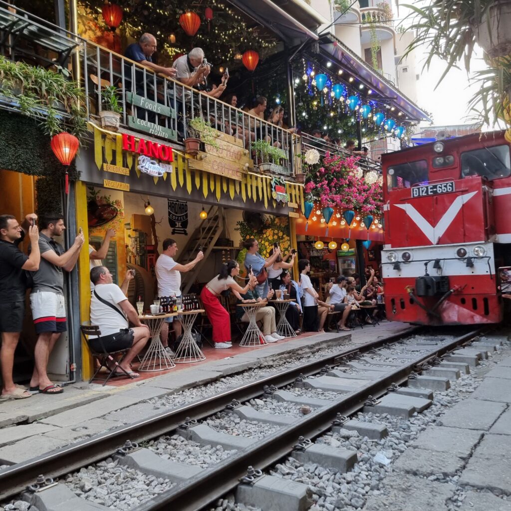 Sehr originell wirds dann in der train street, wo mehrmals am Tag ein Zug mitten zwischen den Cafes durchfährt