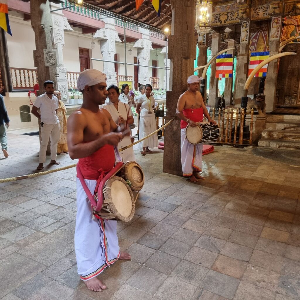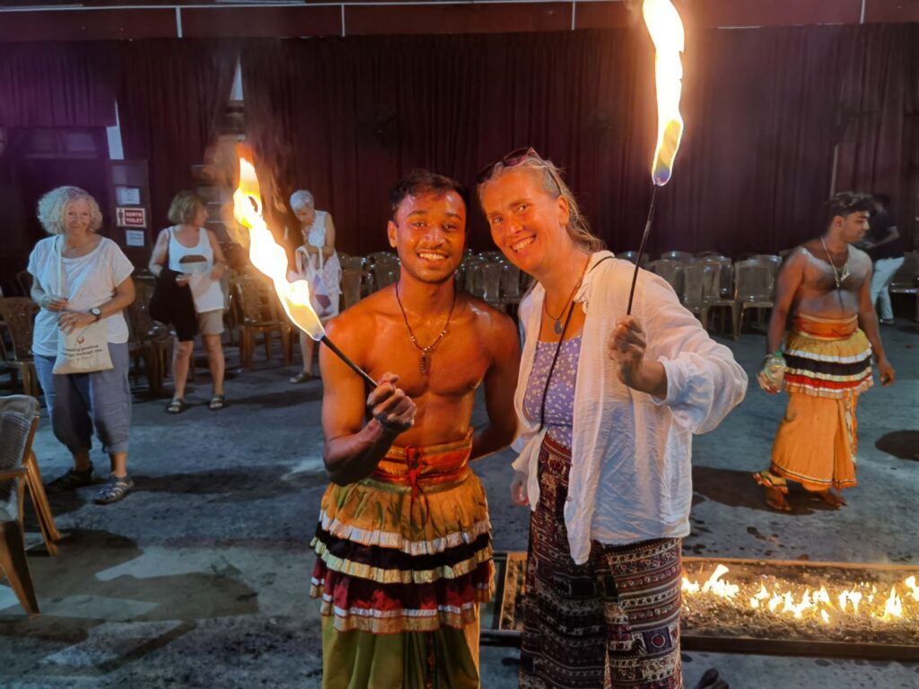 Zum Abschluss des Tages schauen wir uns die Kandy Tänze an mit Trommlern und traditionellen, akrobatischen Tänzern, auch wenns ganz schön touristisch ist, sehr gut und beeindruckend.