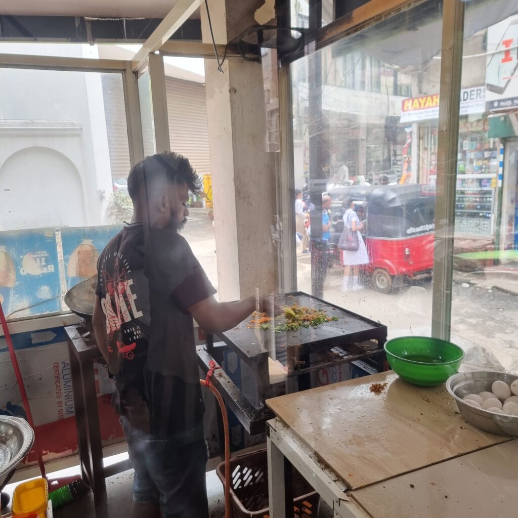Mittags landen wir dann in einem ziemlich originalen Laden und essen Kottu (gehackte Pfannkuchen, mit Gemüse oder auch Chicken angebraten)…lecker!