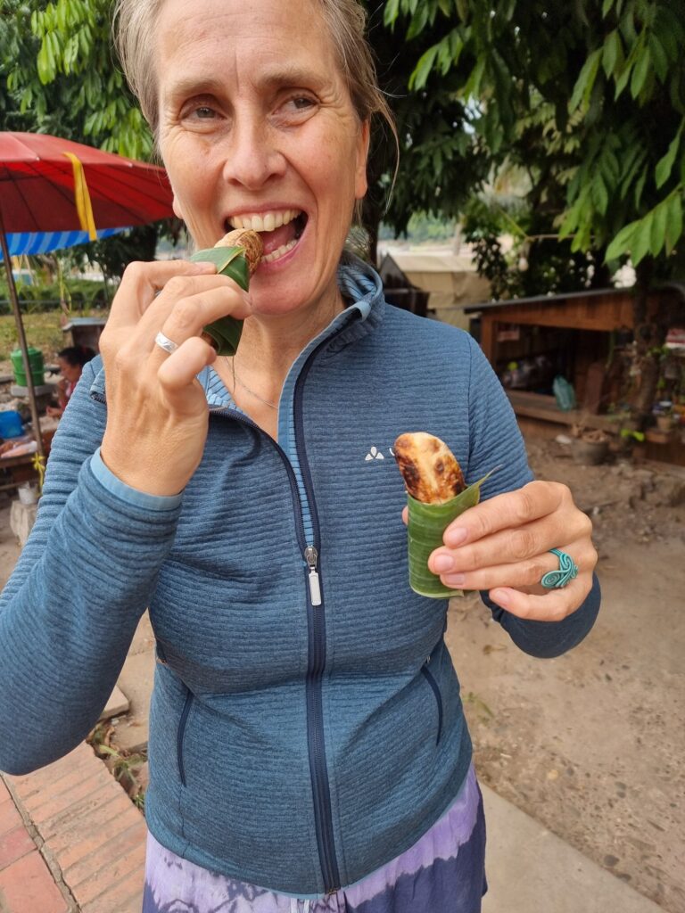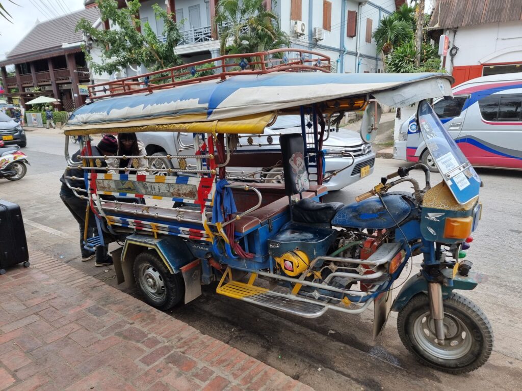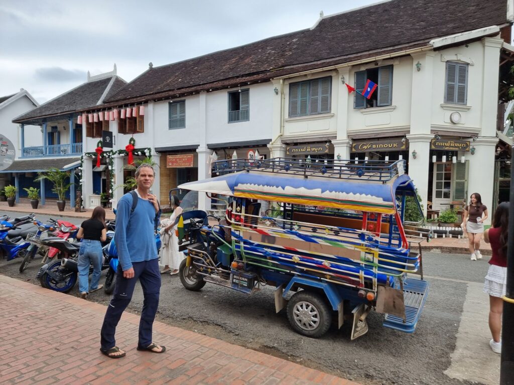 ist ein total schönes entspanntes Städtchen im Norden von Laos. Wir sind vom ersten Moment begeistert, haben noch kein einziges hupendes Auto gehört, dafür gibts hier zum ersten Mal seit SriLanka wieder TukTuks, die aber bisschen langgezogener sind.