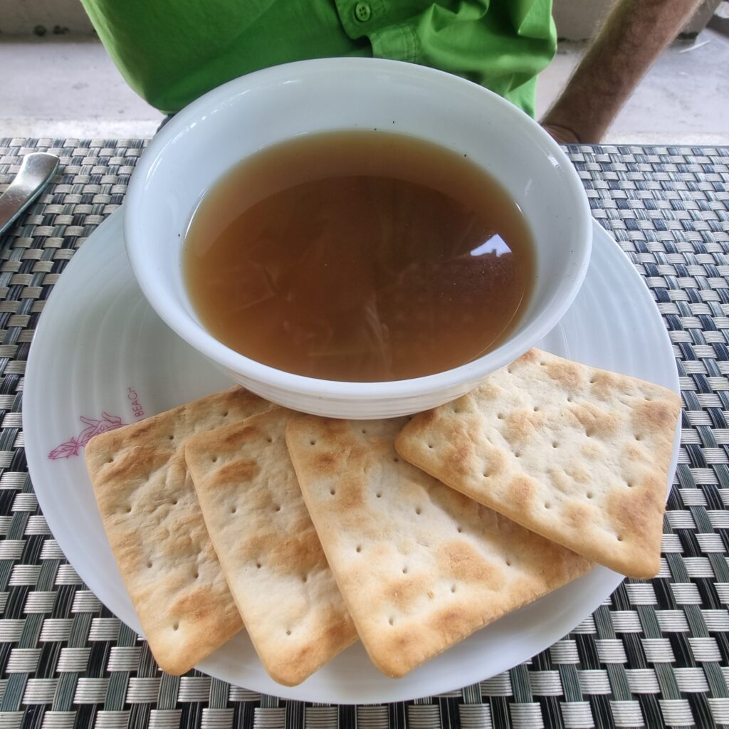 Am Sonntag wollten sie uns mit einem Fisch– Barbecue eine Überraschung bereiten, aber wir waren schon auf der Curry– Seite der Welt angekommen….