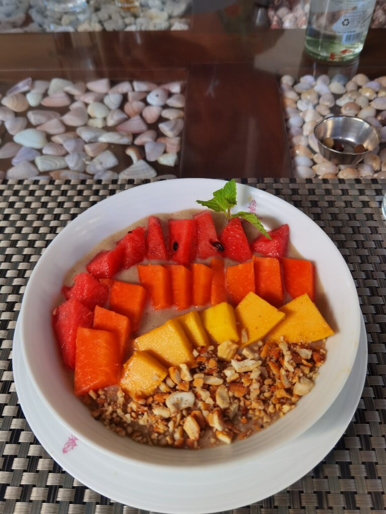 Auf die Doshas abgestimmt, bekommen wir hier hervorragende ayurvedische Küche präsentiert. Vegetarisch, leicht, frisch, lecker, farbenfroh und immer wieder überraschend vielfältig!
