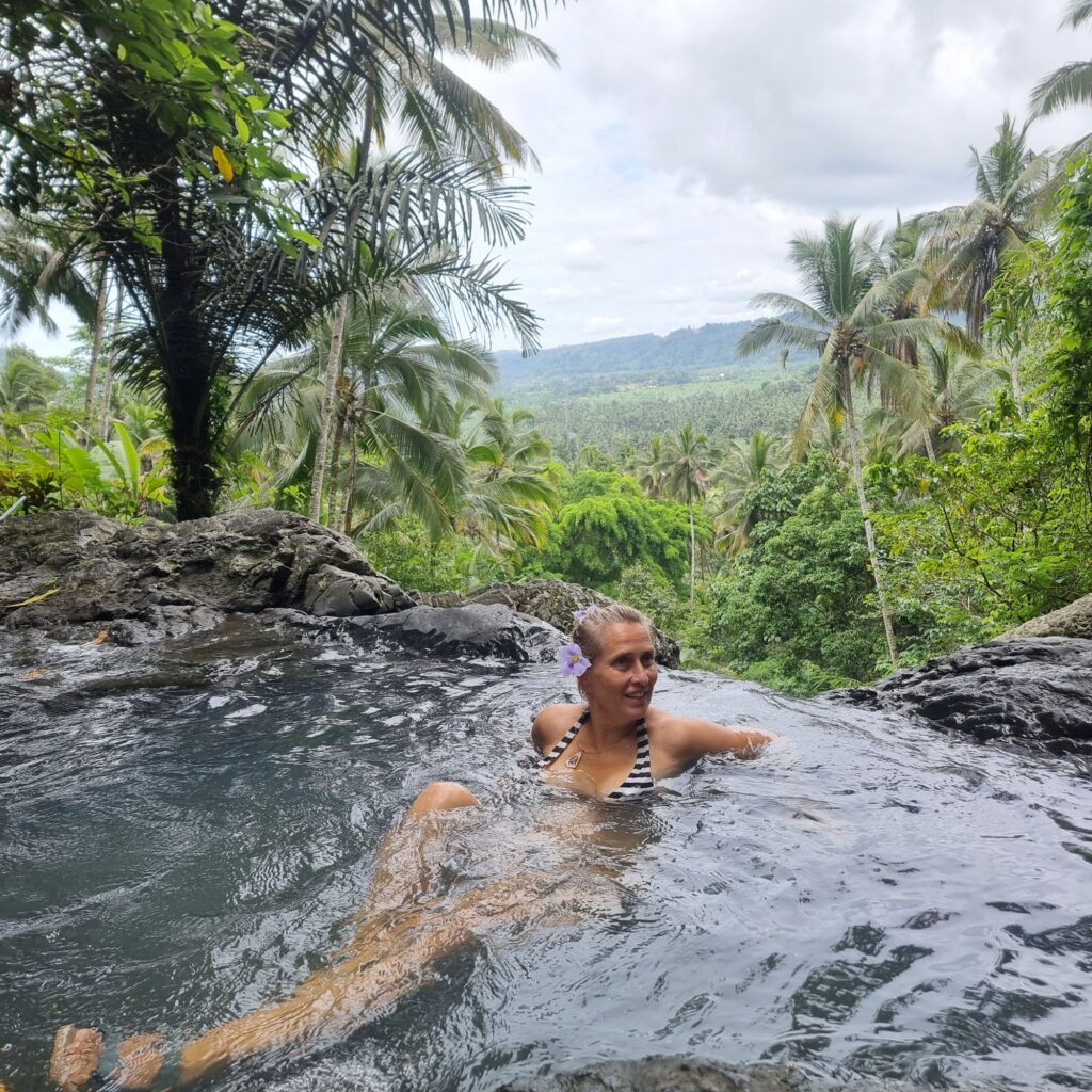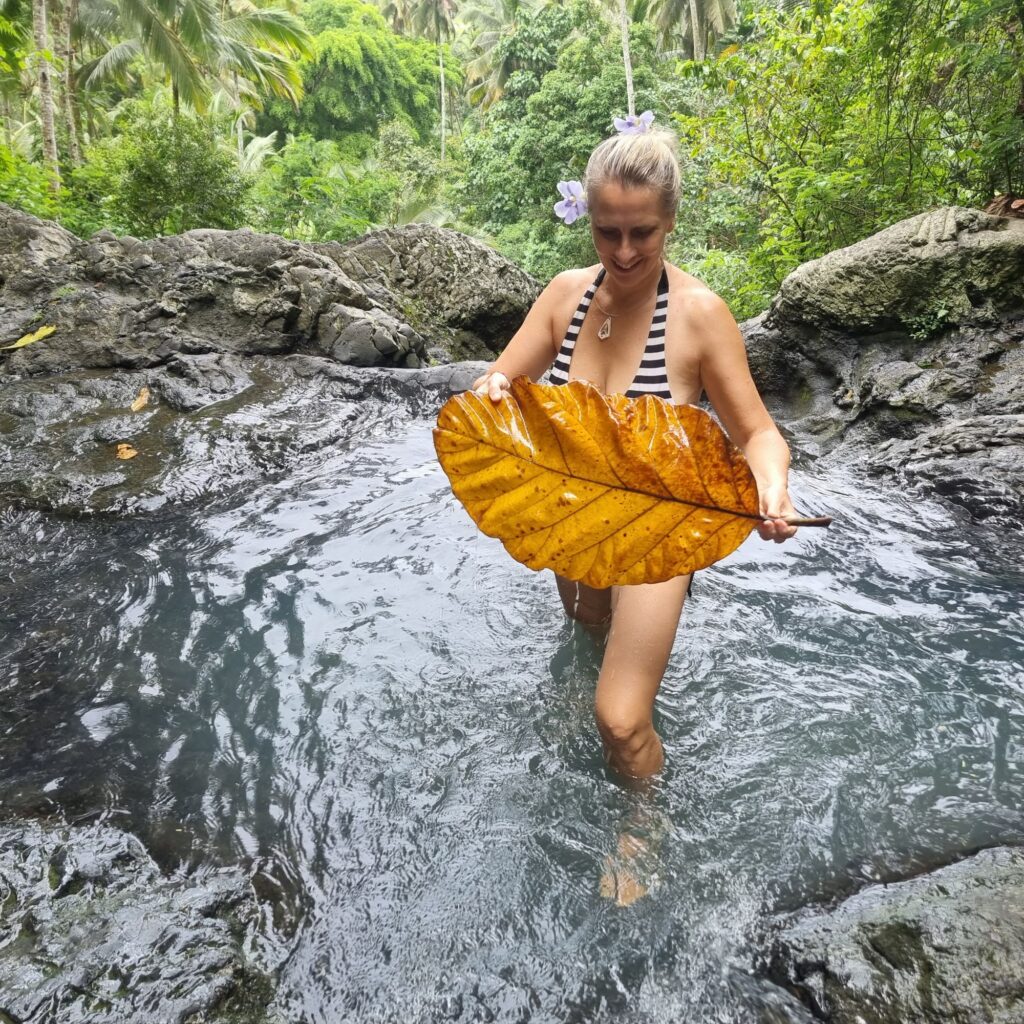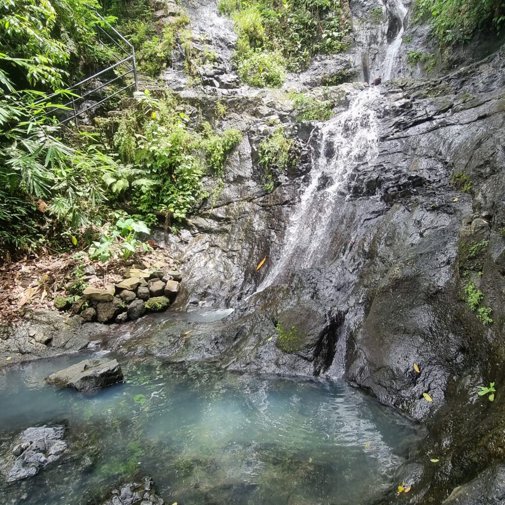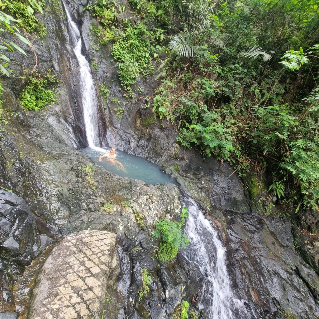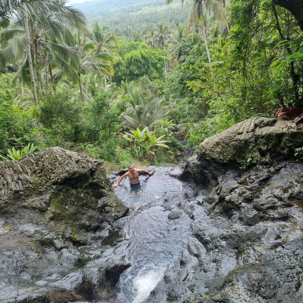 Am Gemblem Wasserfall machen wir Pause, der hat so ziemlich alles, was man sich von so einem Wasserfall wünschen kann: klares, wohltemperiertes Wasser mit vielen Badegumpen zwischendurch inmitten der tropischen Flora.