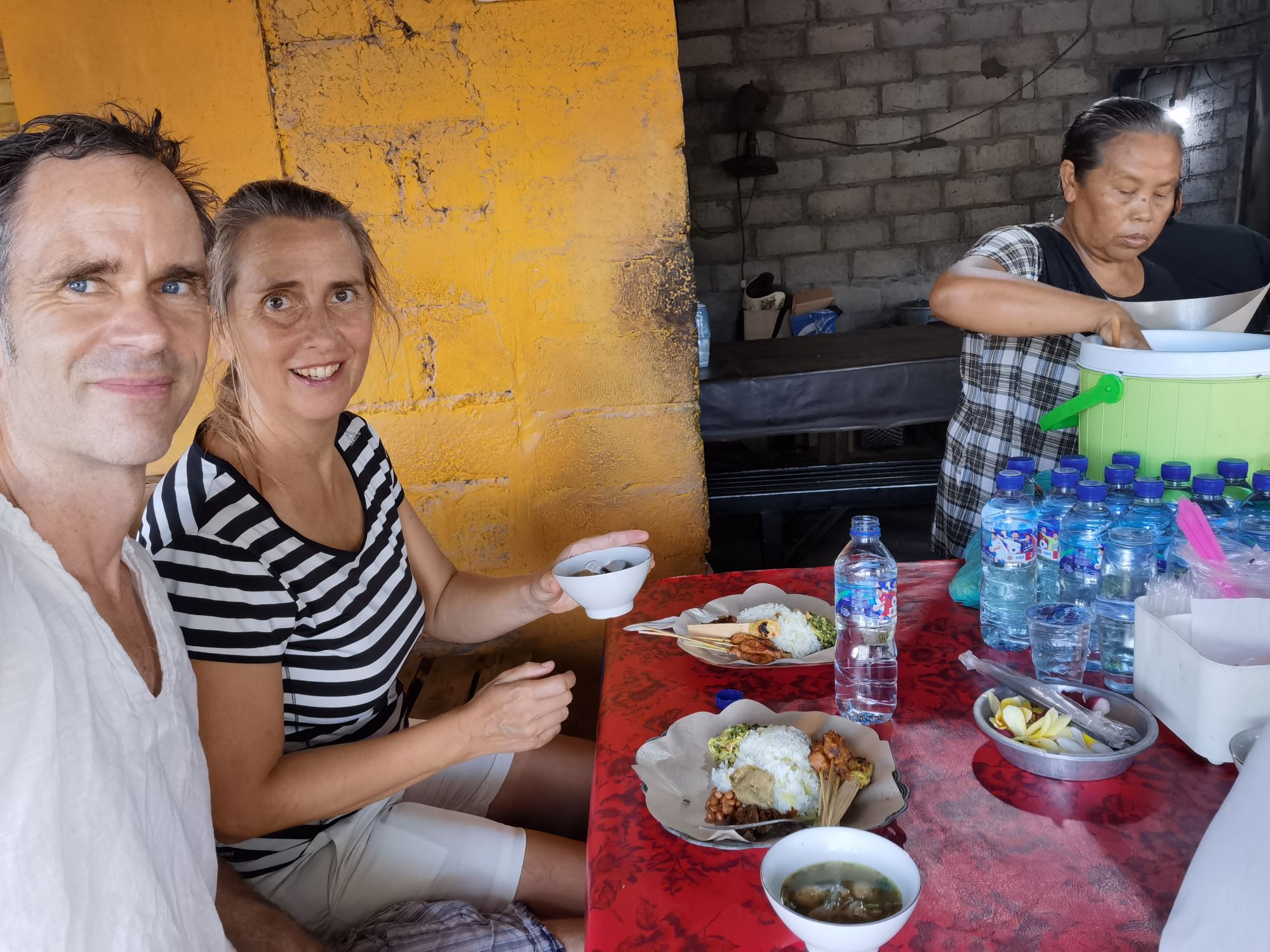 Stärkung finden wir im Warung am Strassenrand, für knapp 2 Euro kocht Mutti lecker Essen und es reicht, bei der Bestellung einfach “2 mal” zu sagen.