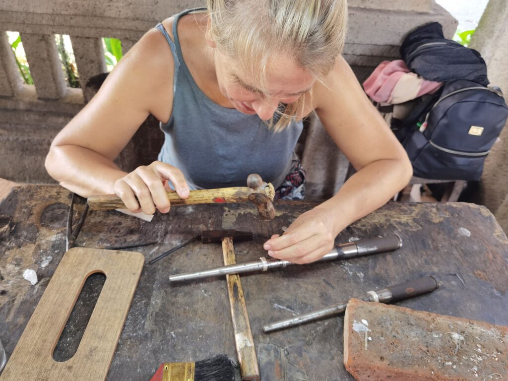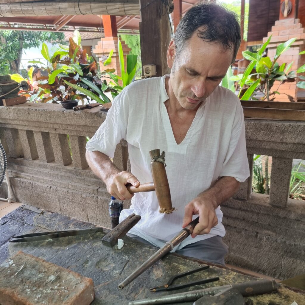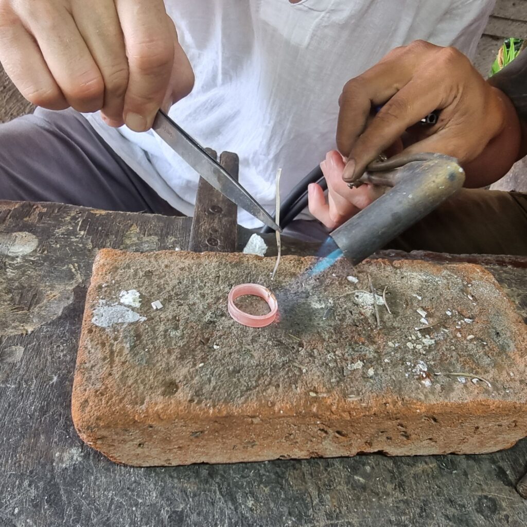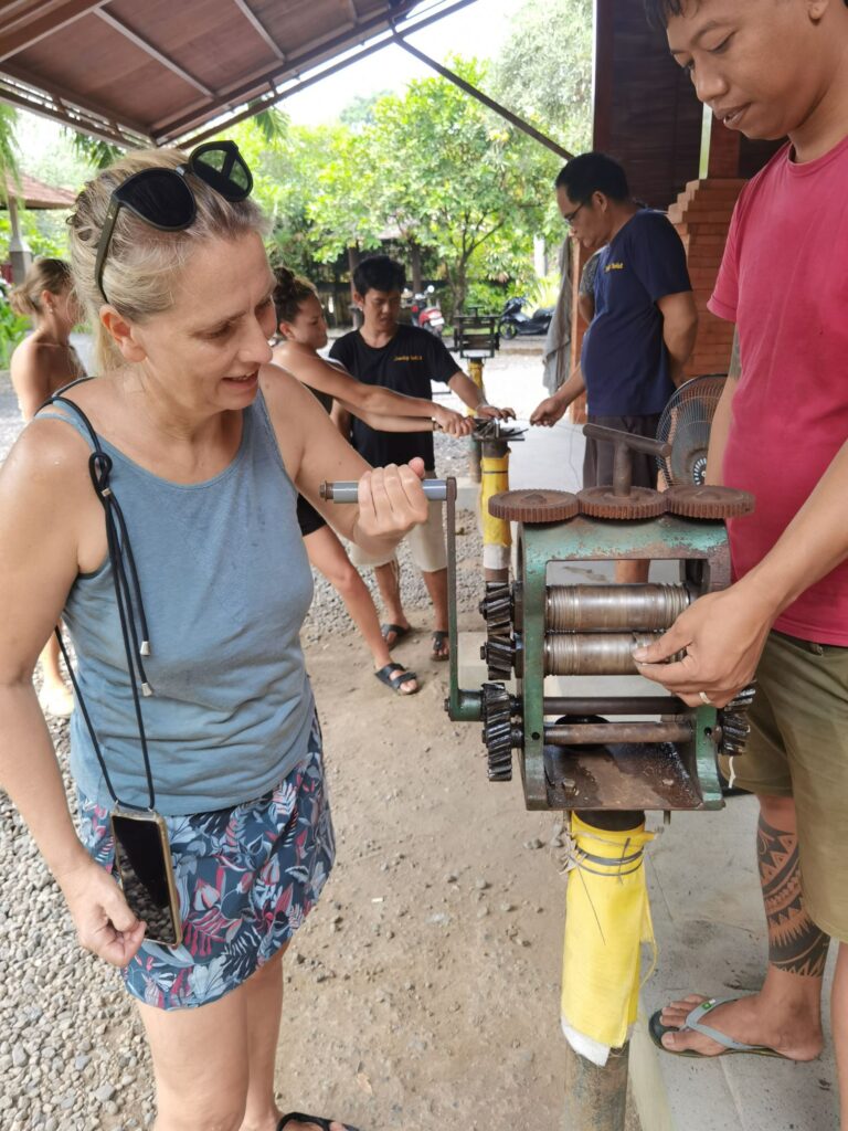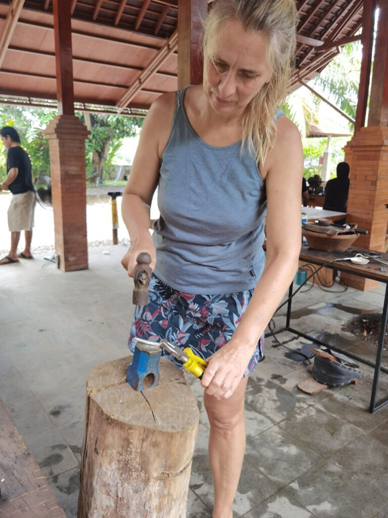 wir sind Wiederholungstäter, haben aber diesmal eine sehr viel schönere Werkstatt gefunden! Vom Einschmelzen des Rohsilbers aus Borneo bis zum polieren, alles dabei!