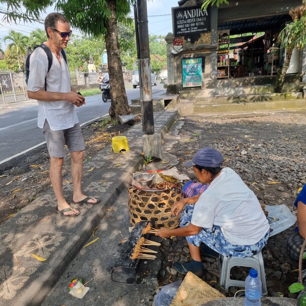 Gleich um die Ecke haben wir uns an kleinen Hühnchenspießen gestärkt