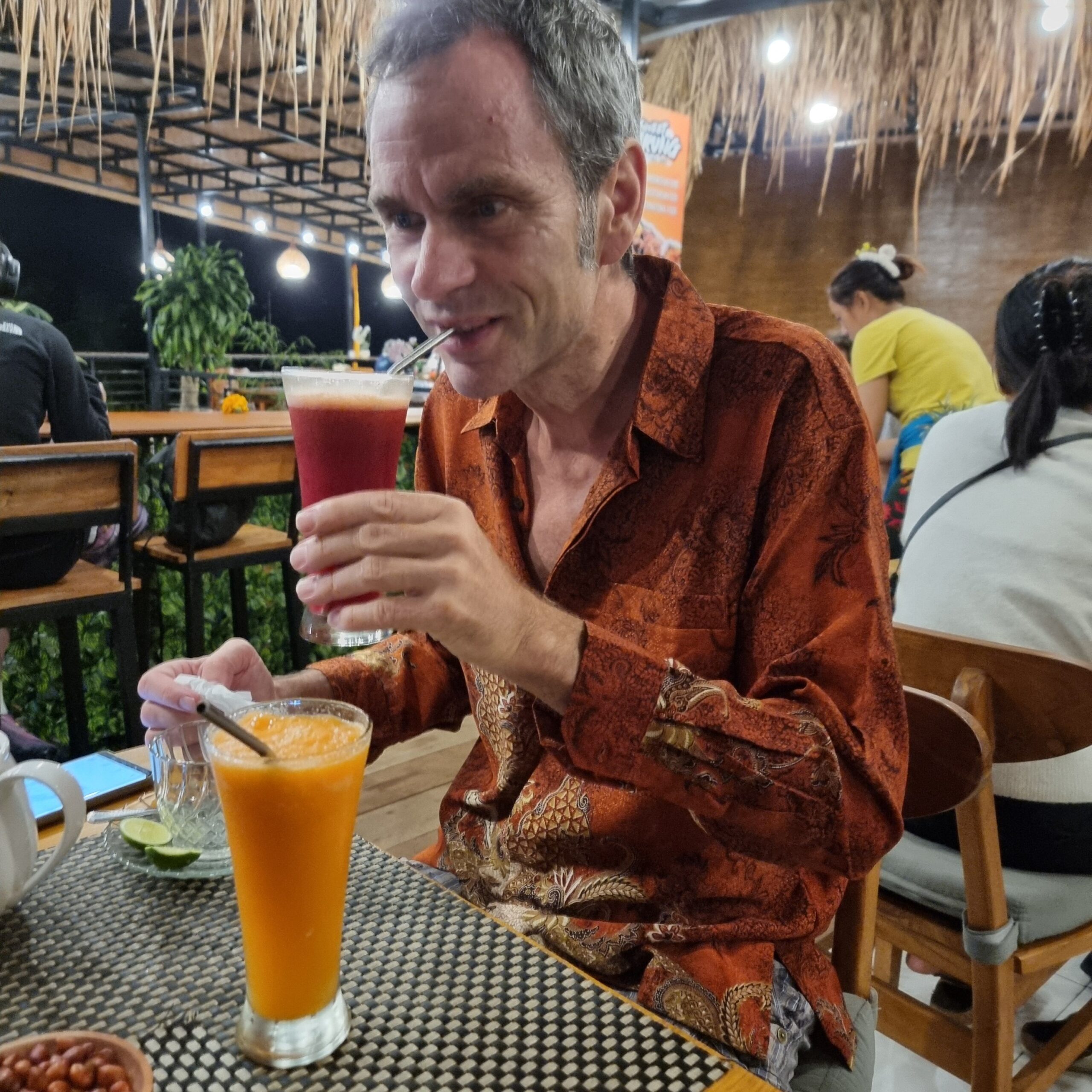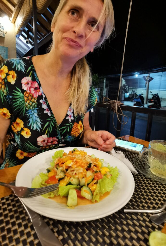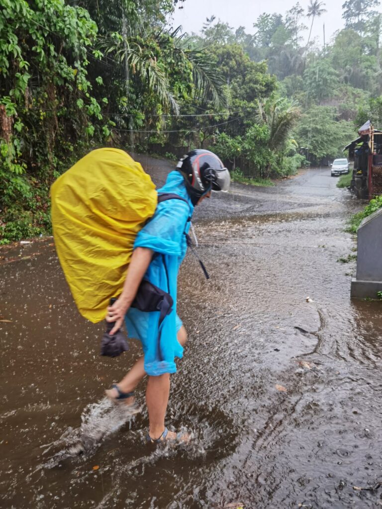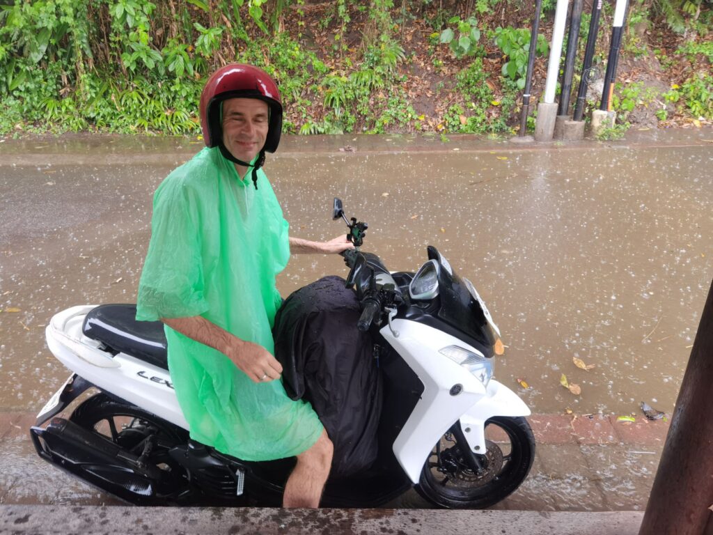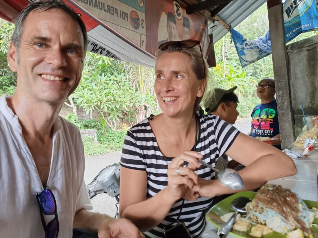 Was wir nicht so auf dem Schirm hatten war, dass im November der Monsun anfängt (hätte man wissen können), und diesmal ist er pünktlich! Wir retten uns in einen kleinen Warung, wo wir wieder total lecker aber unbestimmbar zu Essen bekommen.