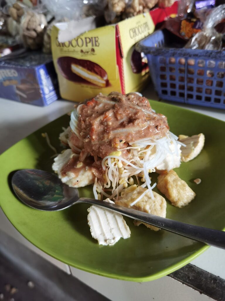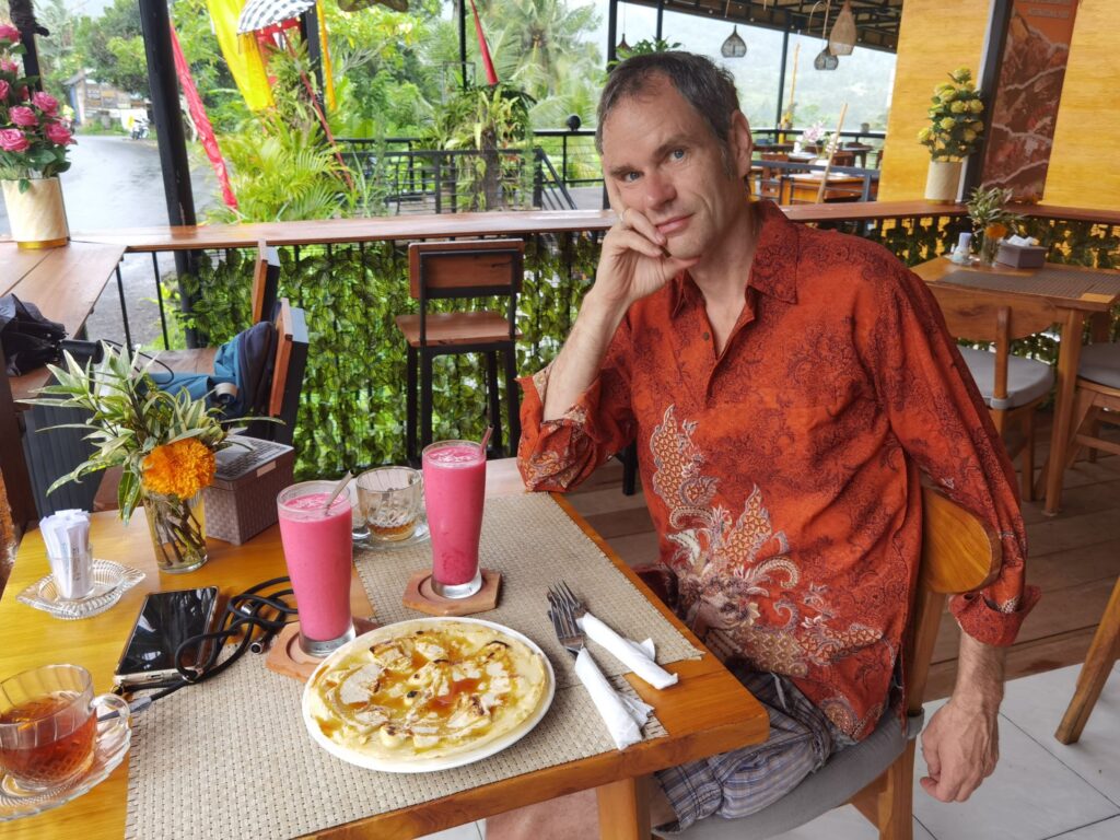 Wir schaffen es dennoch und landen in einem süßen Homestay (Blick vom Balkon oben) und lecker Warung dabei: