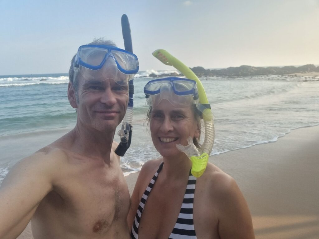 Ein kleiner Schnorchelausflug zur Turtle Beach, wo wir tatsächlich grosse, zutrauliche Meeresschildkröten durch unsere Taucherbrillen entdecken.