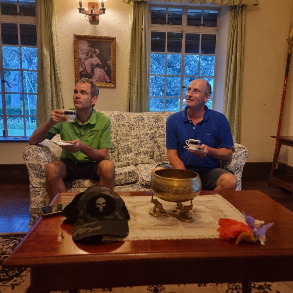 Das machte den General Manager aufmerksam, der gerade vorbei kam. Michi las ihm aus der Hand, dass er einen Toyota Pickup fährt. Er fand uns so lustig, dass er uns in seinen Dienstsitz einlud– natürlich zu einem Tee
