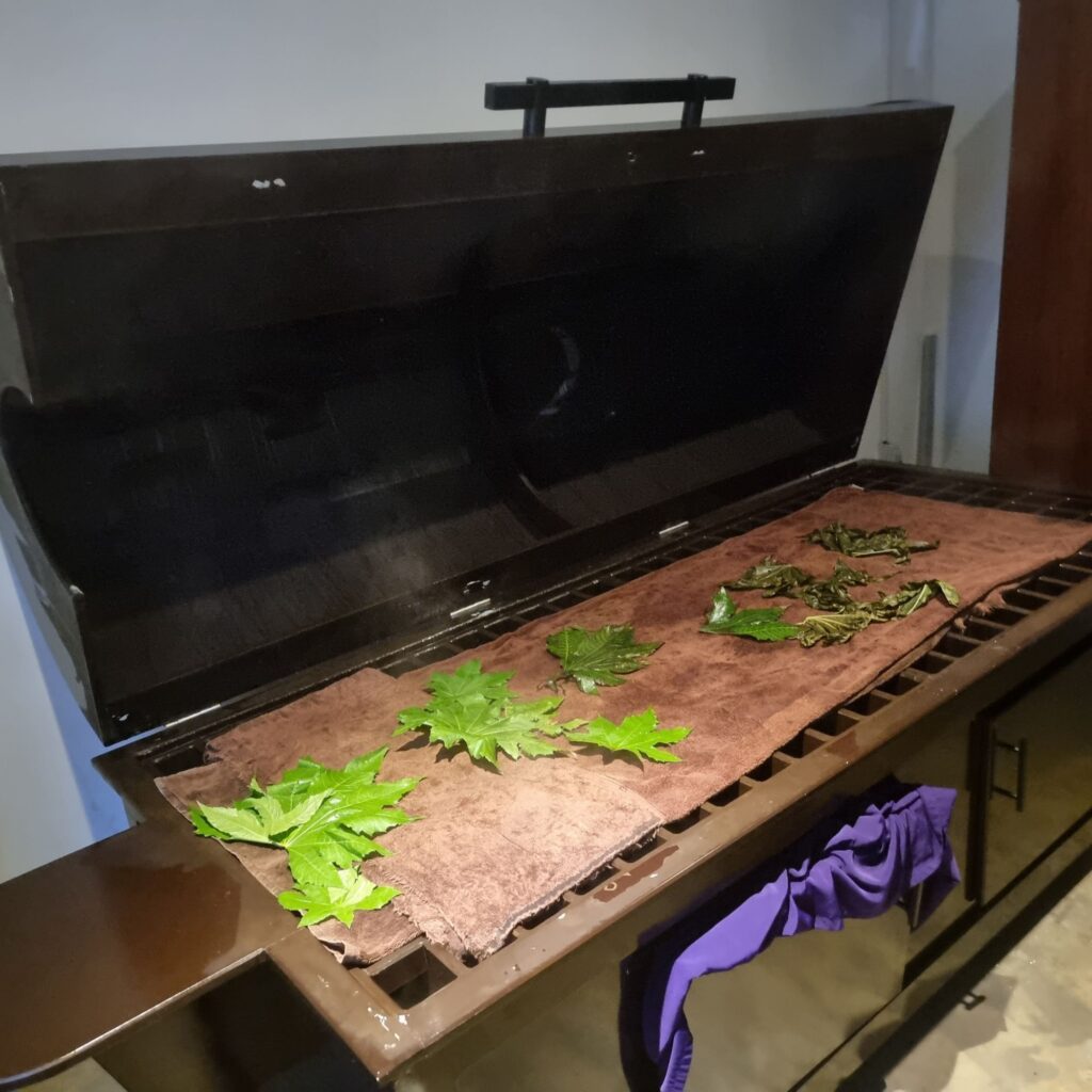 Das ist ein Kräuterdampfbad, in das ich mich jetzt legen darf.