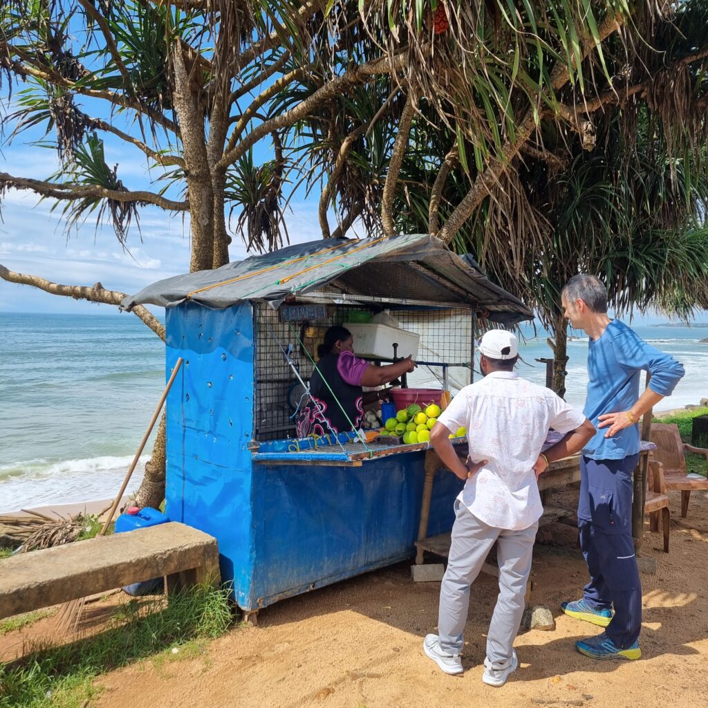 Wir landen in Kudawella-Dickwella im Ayurveda Resort, ein besonderer Platz mit einem tropischen Garten am Meer.