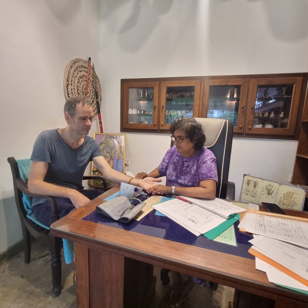 Gleich am ersten Tag gibts eine Konsultation mit der Ayurveda Ärztin, die daraufhin unseren Kurplan für die kommenden 2 Wochen erstellt.
