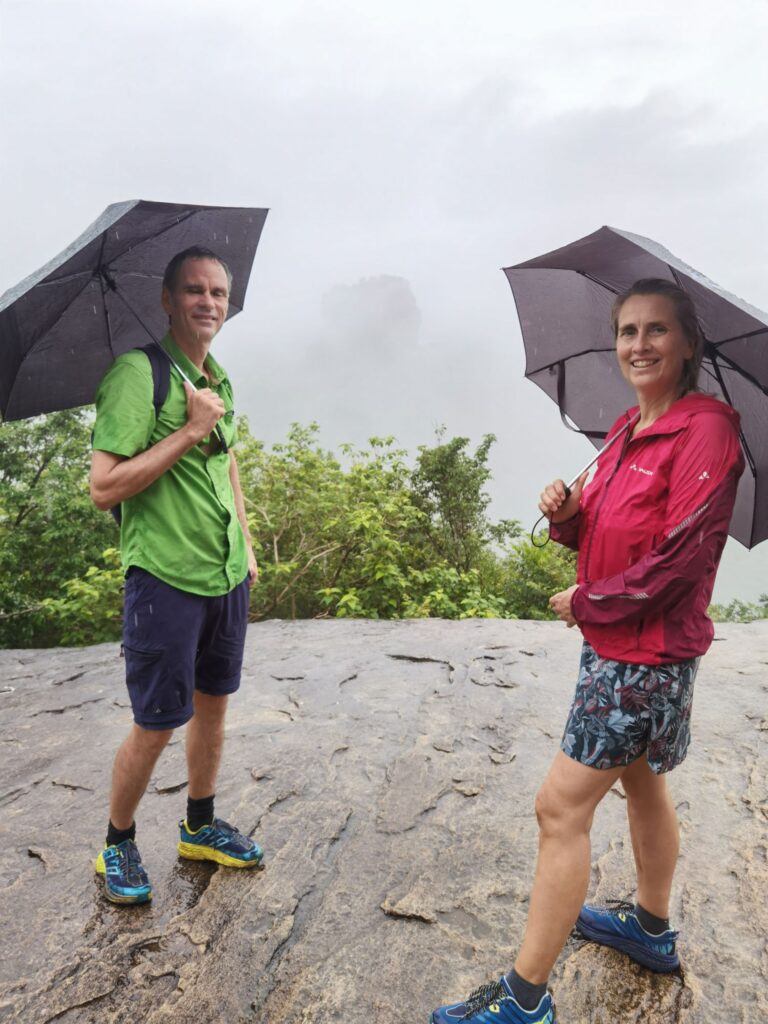 Zuerst sind wir auf den Nachbargipfel Pidurangala gestiegen, der eine super Sicht auf Sigiriya bietet aber mit seinen Kletteretappen den greisen Touris zeigt, wo der nasse Hammer hängt.