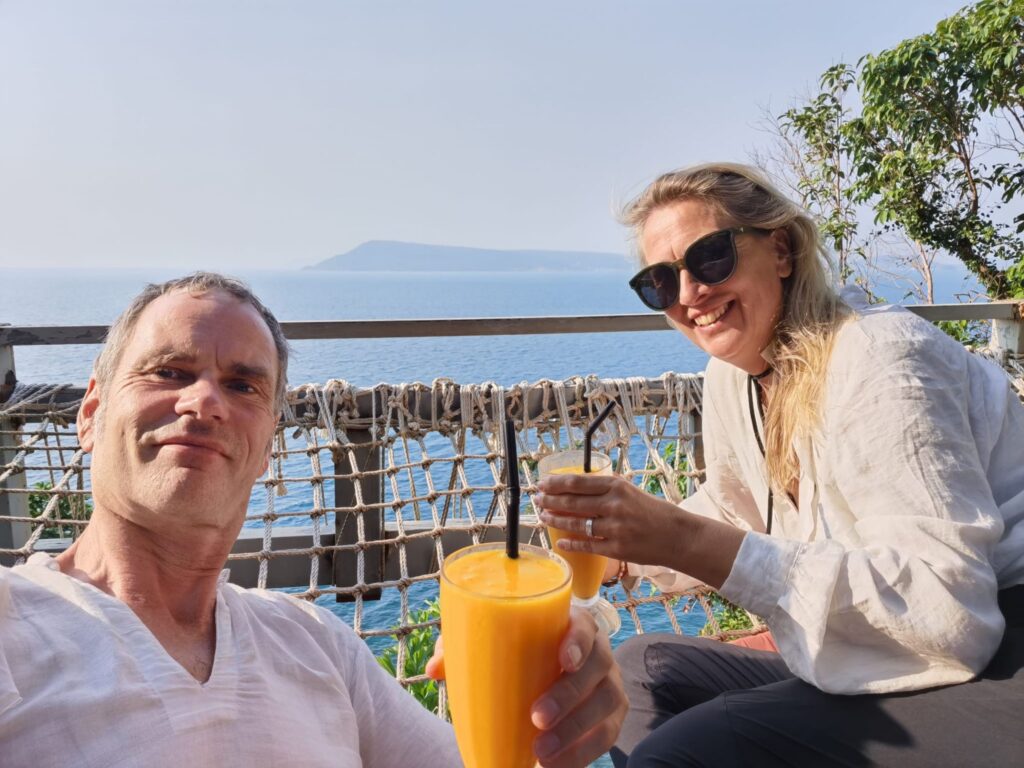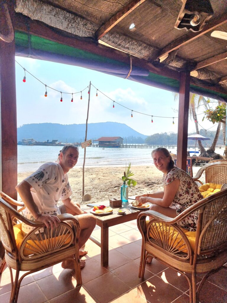 Lazy Tiger Frühstück am Strand, noch ein bisschen mit der Kaffetasse in den Korbsesseln hängen und zwischendurch im azurblauen Wasser paddeln, wir sind schon fast wieder versucht, ein Schwimmtraining draus zu machen…