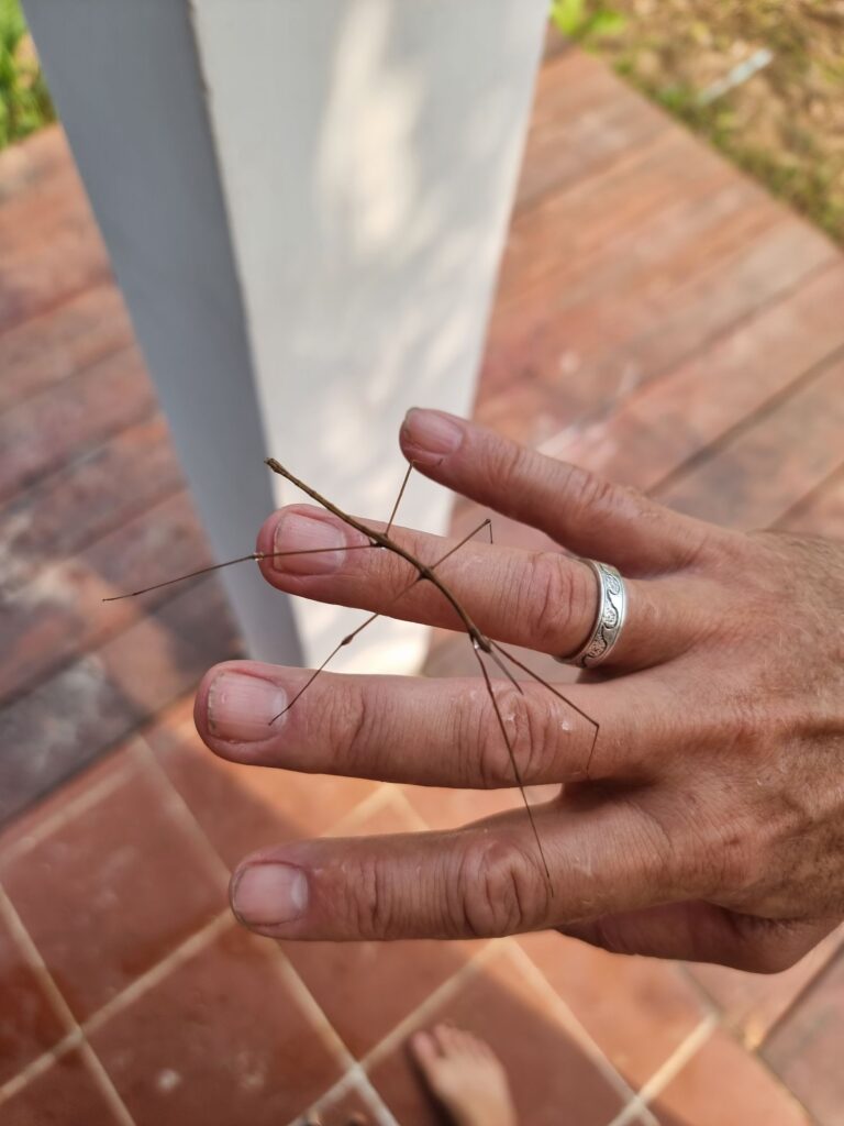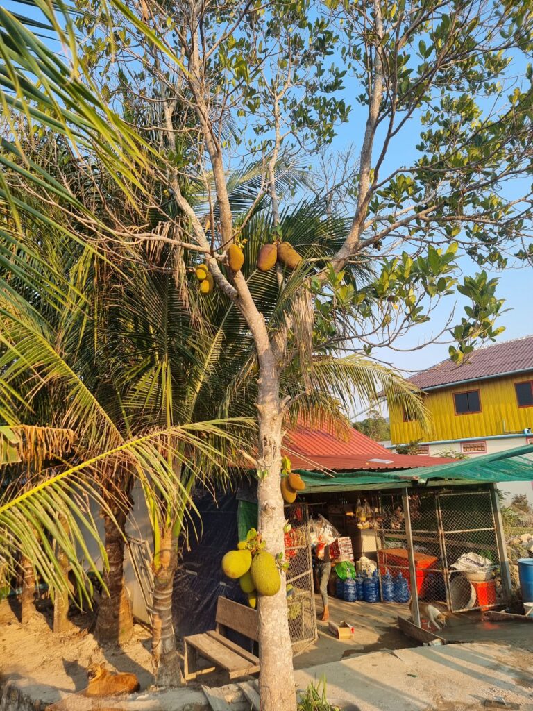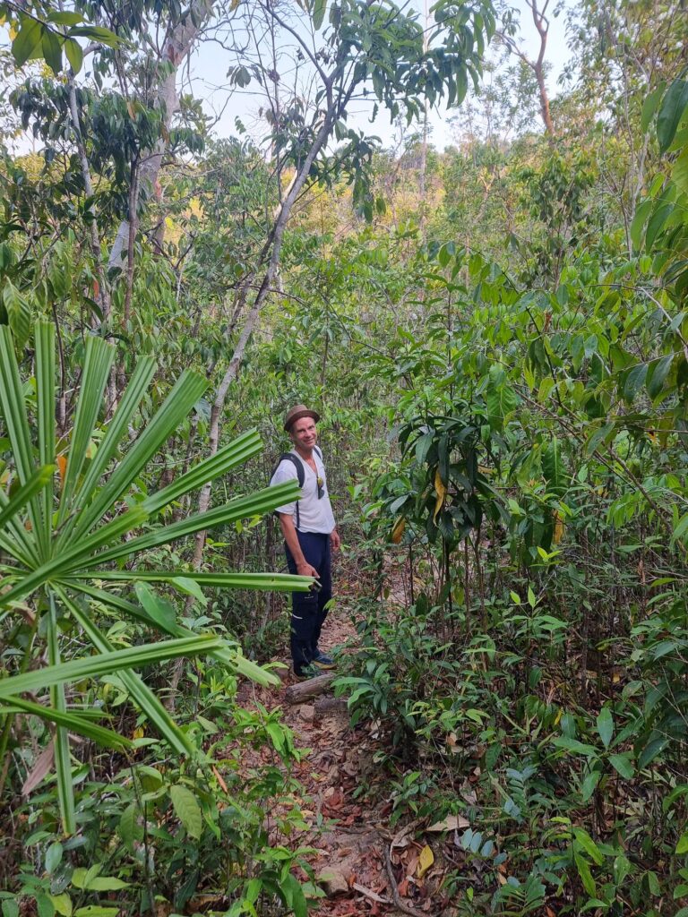 Für den Rückweg ins Dorf wählen wir den Dschungel Trail über die Anhöhe. Und tatsächlich läuft Mirko eine riesige schwarze Schlange über den Weg, die aber zum Glück gleich abhaut. Es gibt einige Giftschlangen hier, inclusive Kobra und keine Chance auf ein Serum.