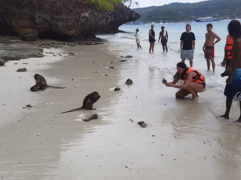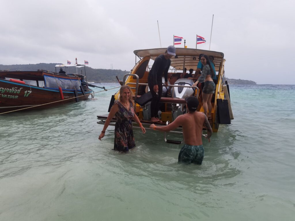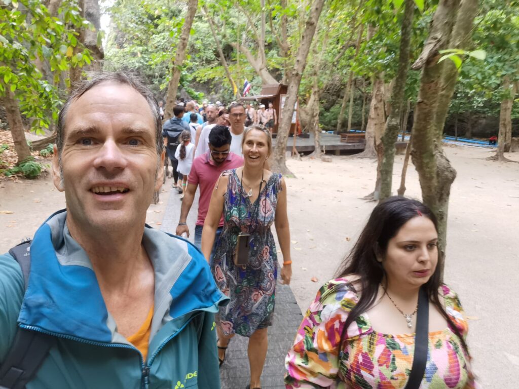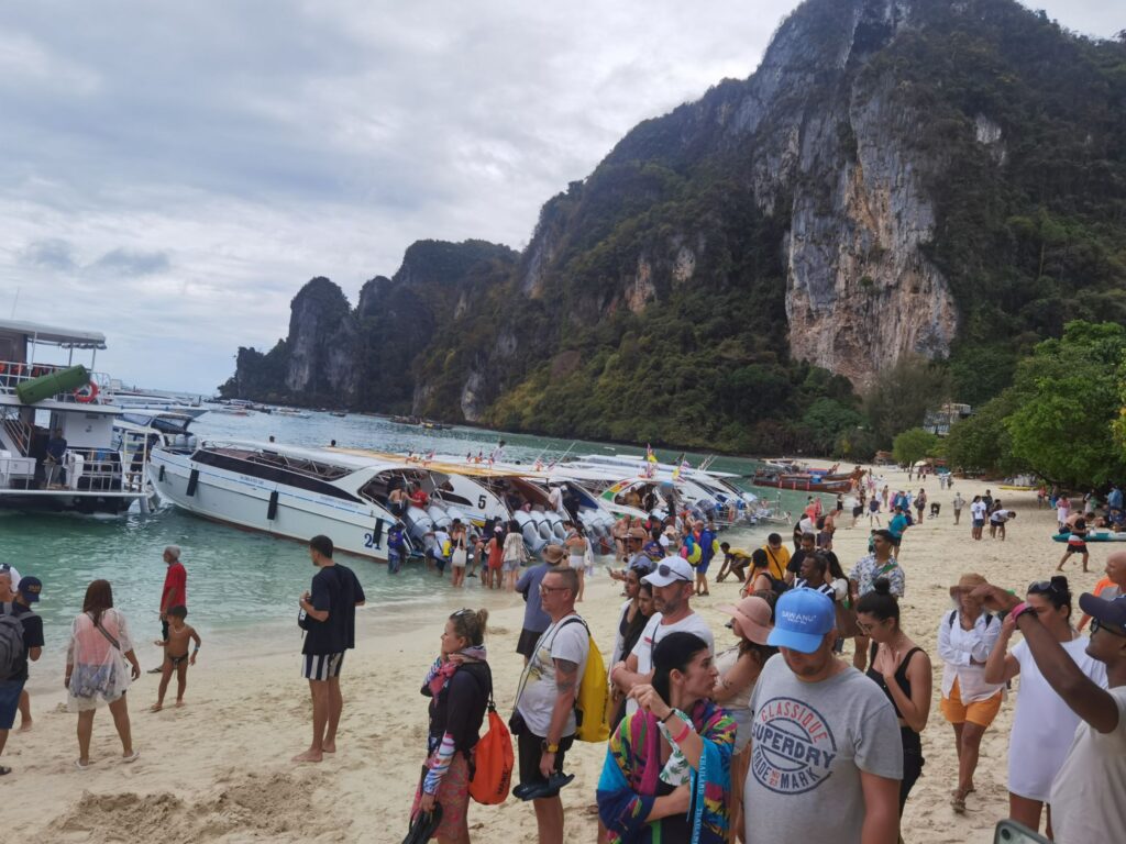Wir werden eingesammelt, der Zeitslot auf Phi Phi wartet! “der Strand” wurde für die Dreharbeiten gerodet und aufgeschüttet. Touristen badeten zu Tausenden in der Bucht und die Boote warfen Anker im Riff. 80% davon sind inzwischen zerstört und die ganze Insel wurde mehrfach gesperrt. Jetzt gibt es einen umkämpften Anleger auf der Rückseite und ein Besuchermanagement System, das seines gleichen sucht! Die Massen werden auf markierten Stegen über die Insel geleitet und am Strand immer wieder aus dem Wasser gescheucht. Surreal!