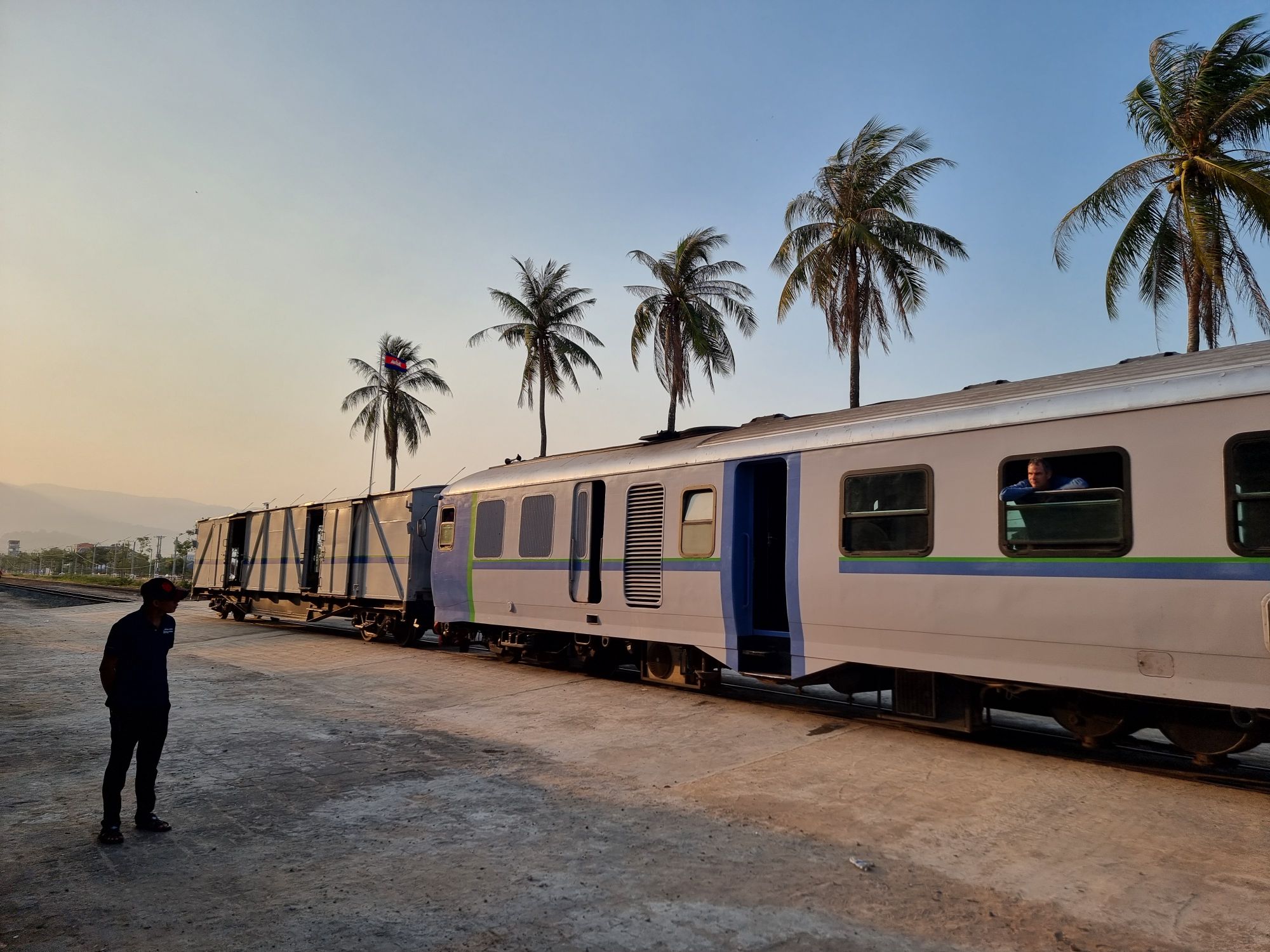 Auf der Strecke fährt so selten ein Zug, dass wir auch von den Leuten an der Strecke fotografiert werden. Schranken werden von Hand unten gehalten und in Phnom Penh ist der Bahndamm schon Teil des Wohnzimmers- wir fahren quer durchs Familienleben!