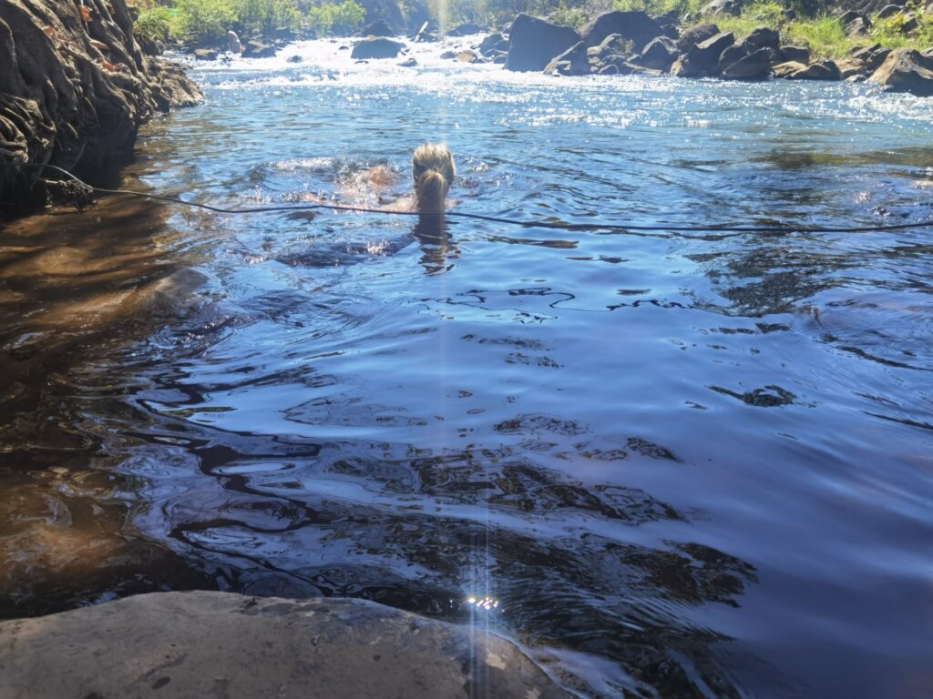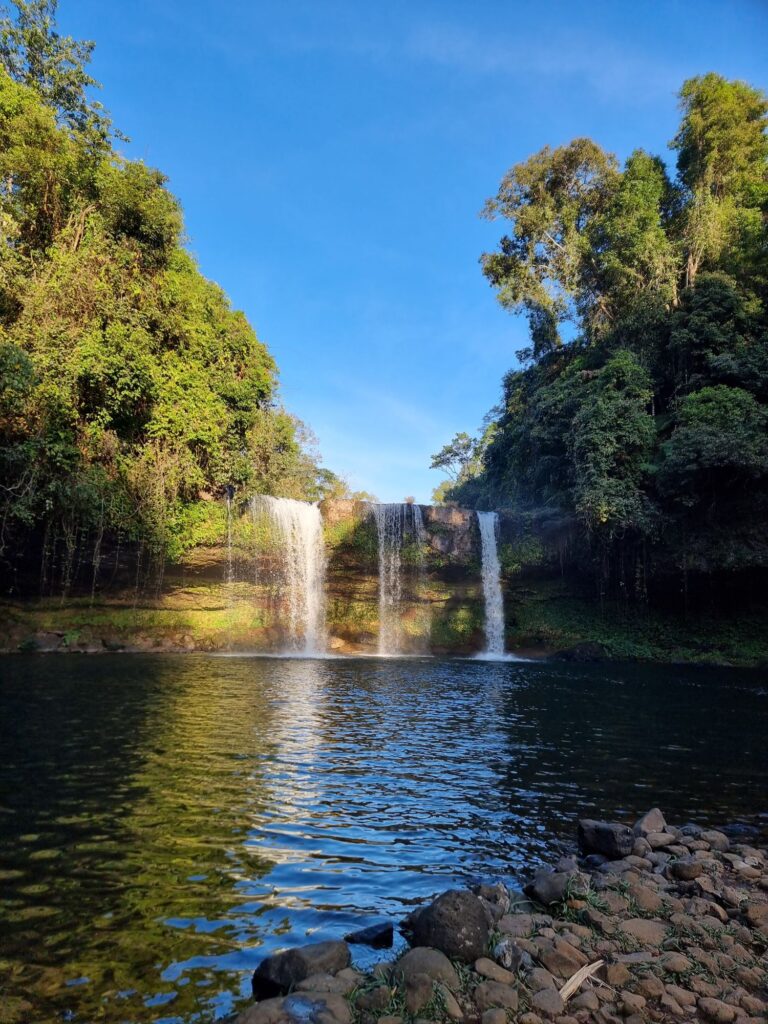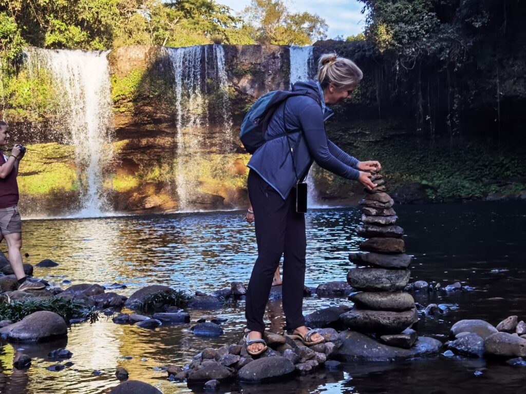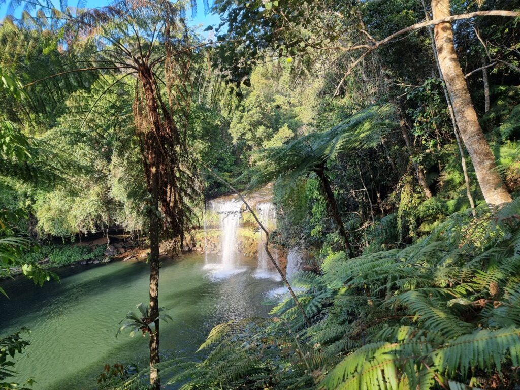 Gleich gegenüber ist ein zweiter Wasserfall, hier finden wir einen Bungalow zum Übernachten.