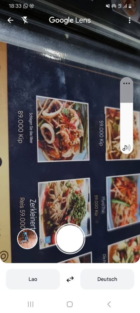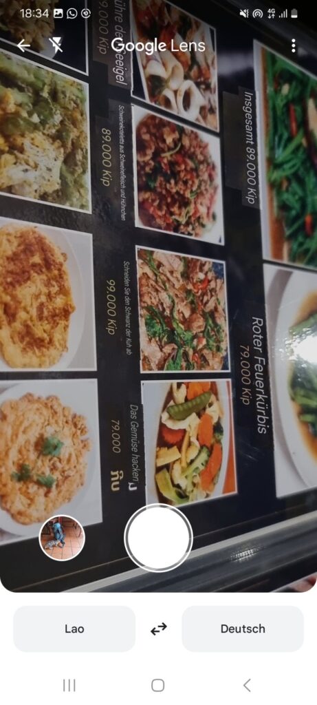 Im Restaurant schlägt uns Google Übersetzter lustige Sachen zum Essen vor…