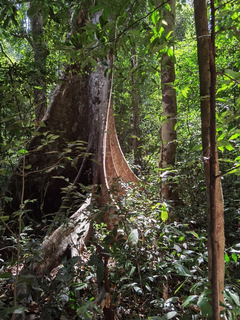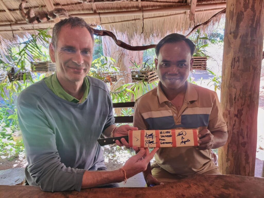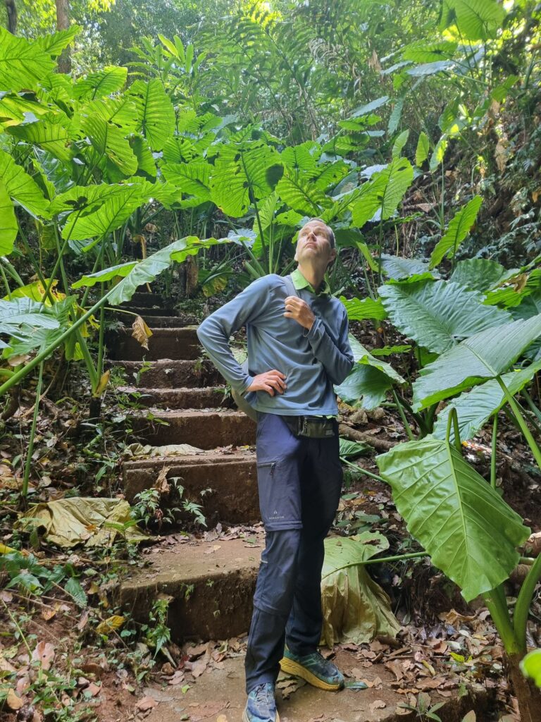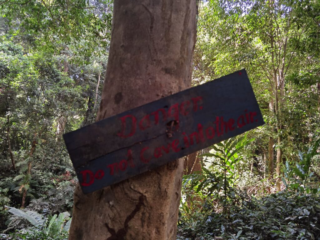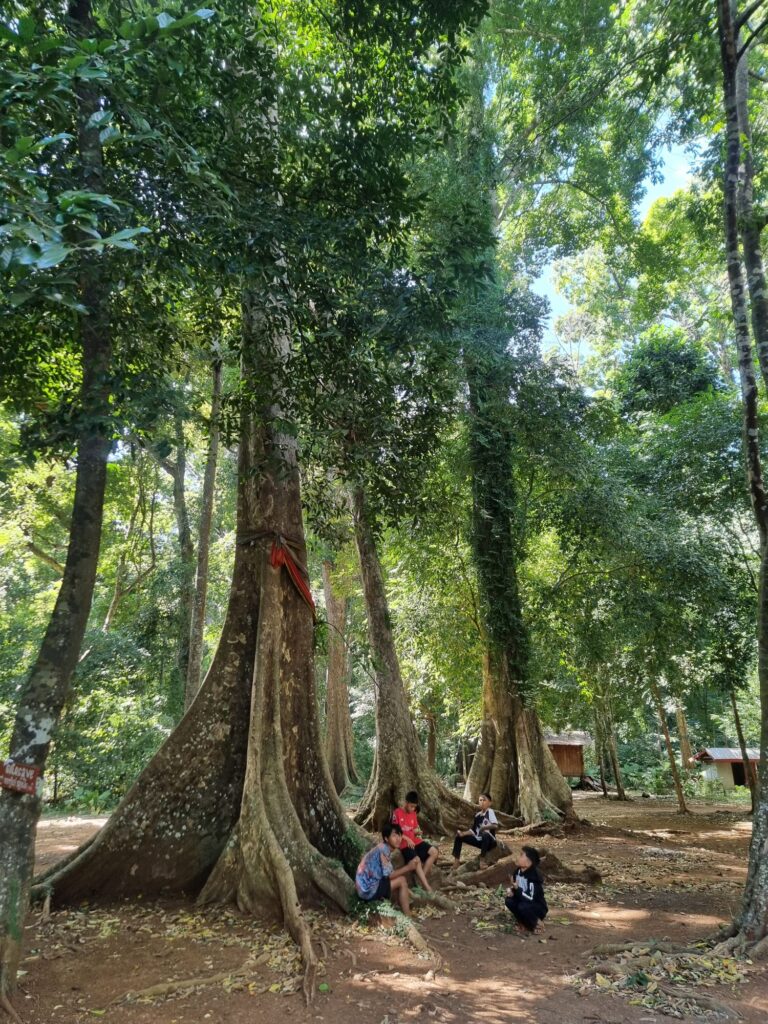 Schon fast Mittag kommen wir los und suchen einen 1000 Jahre alten Baum, dem ein Buddhashrein gewidmet ist. Eine Höhle gibt es auch noch, aber wir haben kein Feuerzeug dabei, um die Luft dort unten zu testen- soll manchmal gefährlich sein. Die OSM Karten hier sind nicht gut gepflegt und so schickt uns das Navi über LPG Wege von hinten zum Wald- das ist schon Offroad!