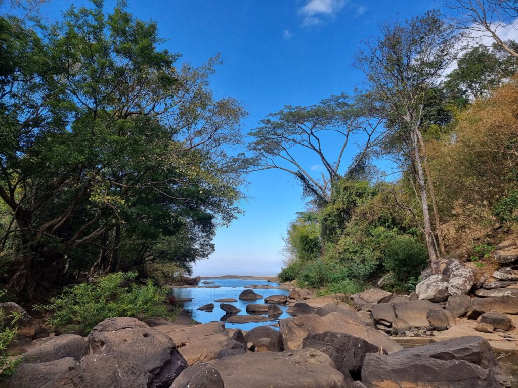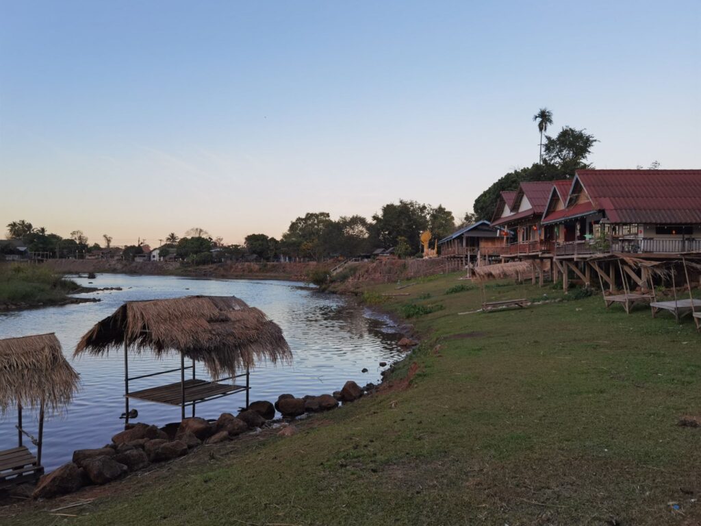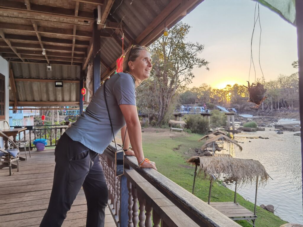Andere Dinge sind gefragt, vielleicht sollten wir wieder mal was essen? Ist schon wieder Nachmittag! Das Dorf Tad Lo am gleichnamigen Wasserfall ist nicht weit und hat lecker Salat und Smoothie für uns. Wir sind gerettet, aber nur Hunger war dann doch nicht das Problem. Wir beschließen, einfach hier zu bleiben, schön ist es ja. Wir finden auch einen Bungalow direkt am Fluss!