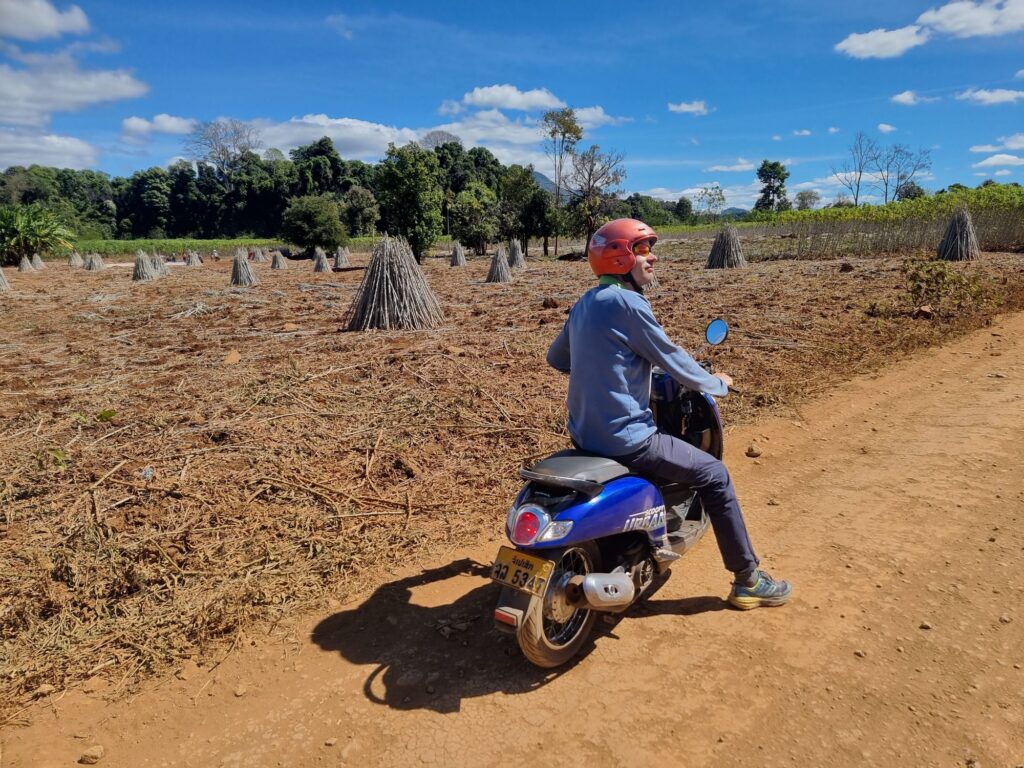 Ganz großer Beliebtheit erfreuen sich hier in Indochina Motorradtouren durch landschaftlich schöne Gebiete, sogenannte Loops. In Vietnam gibt es so einen, den wir wegen der Kälte nicht machten. Hier bei Pakse gibt es auch eine Empfehlung, 250km aufs Tacho zu schrauben und sich das Bolaven Plateau anzuschauen. Wir haben uns überzeugen lassen, stellen aber bald fest, dass uns die Entfernungen zu groß und der Spaß am brum brum zu klein ist. Schon gestern brachen wir bei der Plantage ab, heute hatten wir in Tad Lo beim Wasserfall genug, Angela ging’s auch nicht so gut.