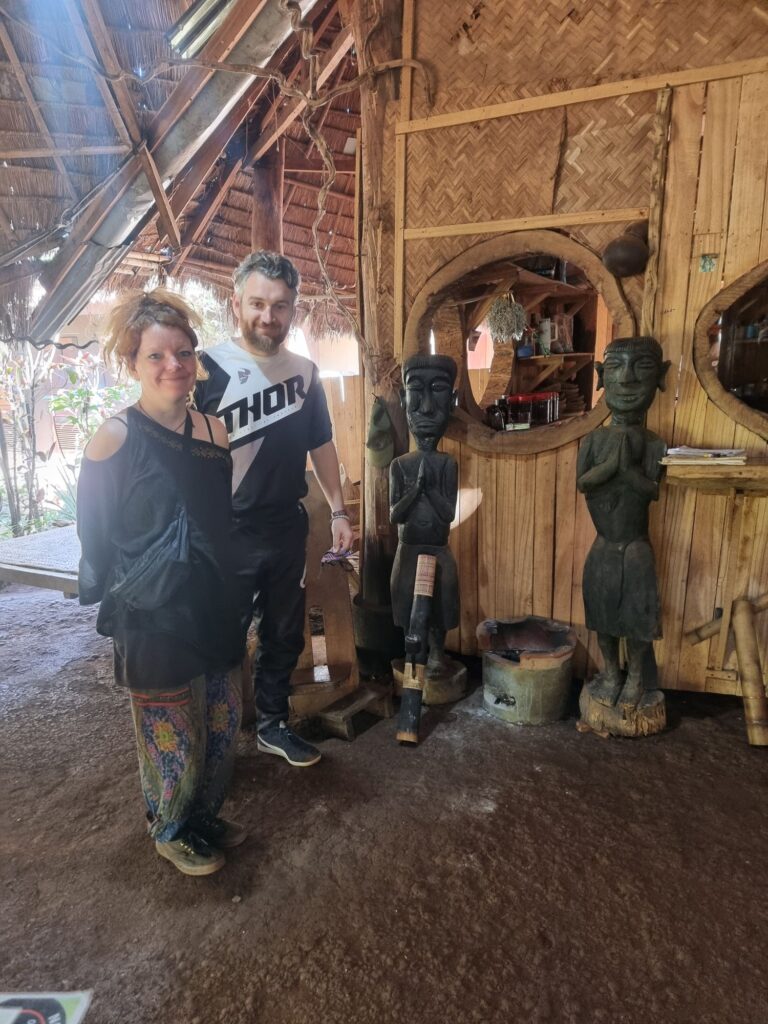 Auf der Plantage gefällt es uns sehr gut, so daß wir zuerst noch in der Hängematte Blog schreiben und Kaffee und Kakao trinken. Außerdem haben wir mit den 2 anderen Übernachtungsgästen aus Dresden nette Gesellschaft.