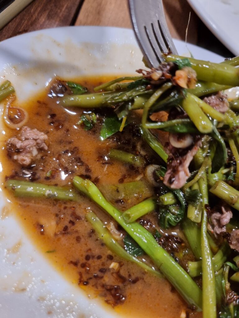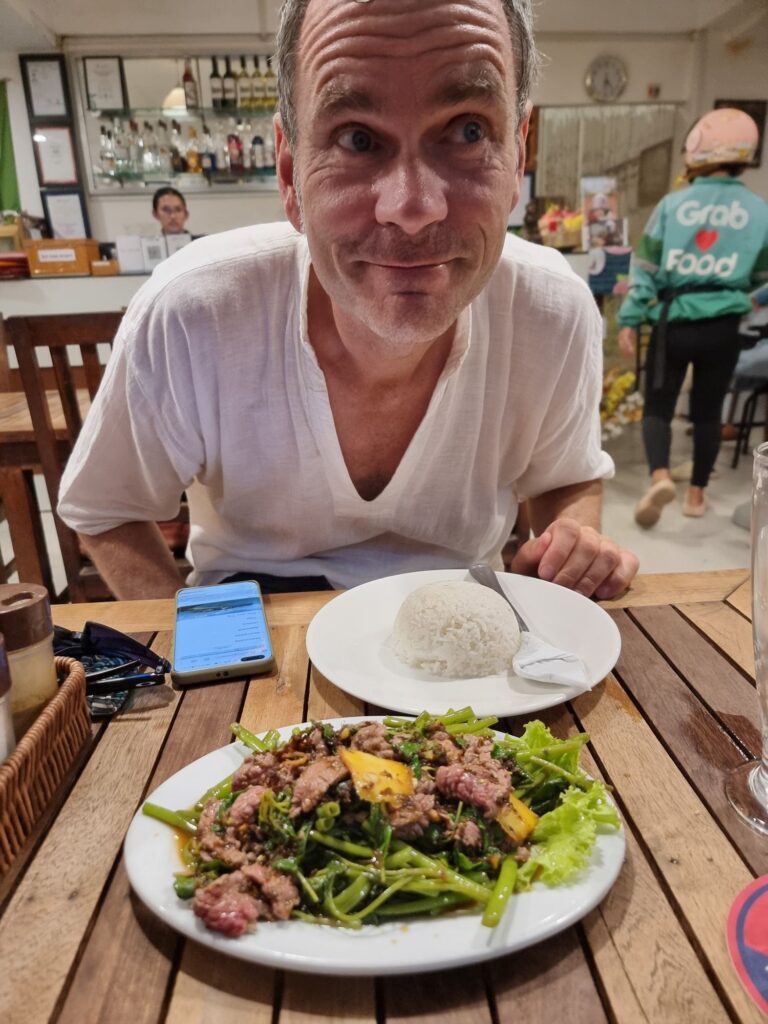 In “my little café” gibt es z.B. sehr gute Küche zum fairen Preis. Auch hier wird der Gewinn in gemeinnützige Projekte gesteckt, allen voran Bildung. Dann entdeckt Angela noch ein Gericht auf der Karte, an dem ich nicht vorbeikomme: Rind mit roten Ameisen. Auf dem Teller findet sich fast ein ganzes Nest aber der Geschmack ist wirklich fantastisch mit seiner leichten Säure und passend zum Fleisch- könnte man ja mal mit unseren Waldameisen probieren..