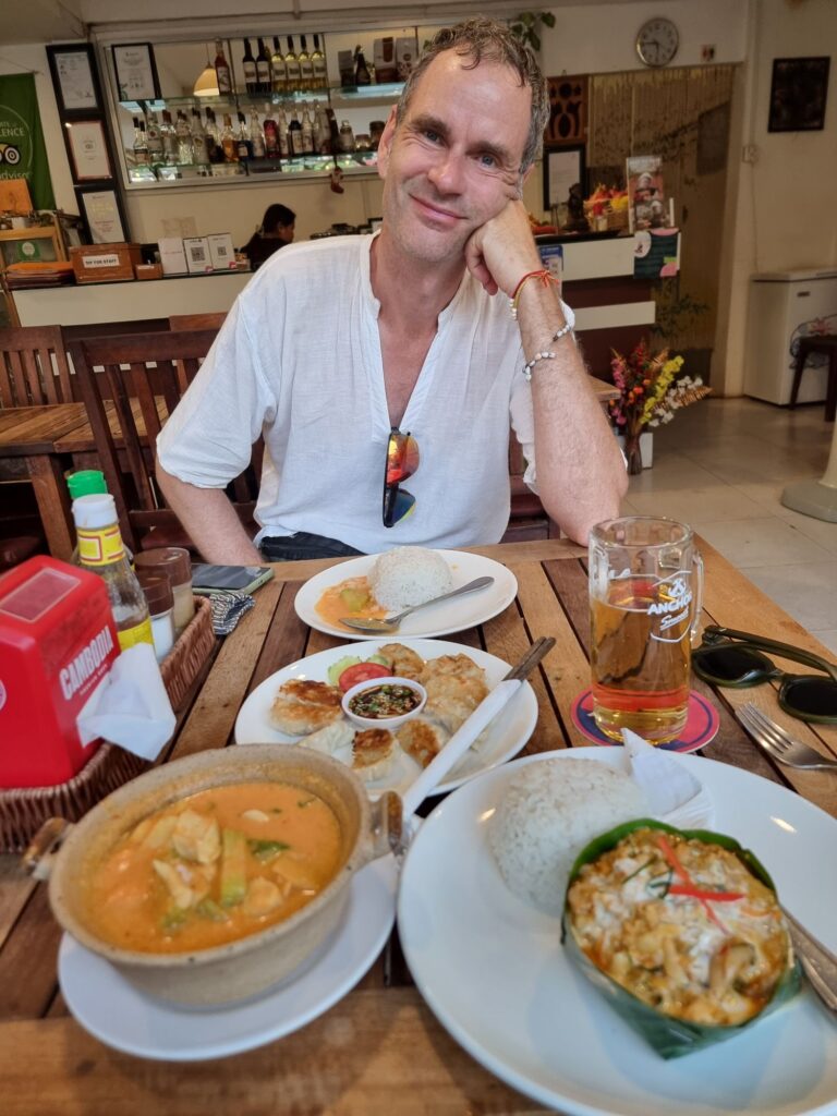 Siem Reap ist die bei weitem touristisch entwickeltste Stadt in Kambodscha- sauber, gute Infrastruktur und viele Gelegenheiten, sich zu entspannen. Beim Yoga auf dem Dach des “little elephant” treffen wir eine Frau aus Ecuador, die mit einem Deutschen hier für die GEZ arbeitet und manchmal Yogastunden gibt. Sie kennt die besten Cafés und Restaurants und wir probieren sie aus!