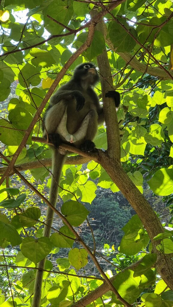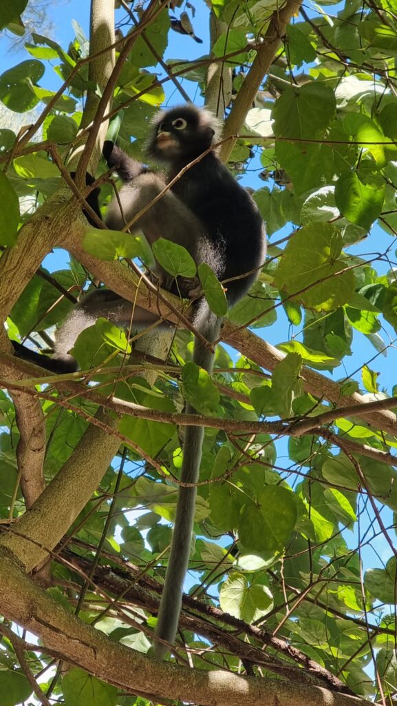 Uns begrüßen heute wieder die herrlichen Brillenaffen. Die sind eher unaufdringlich und nicht so frech wie ihre Kollegen.