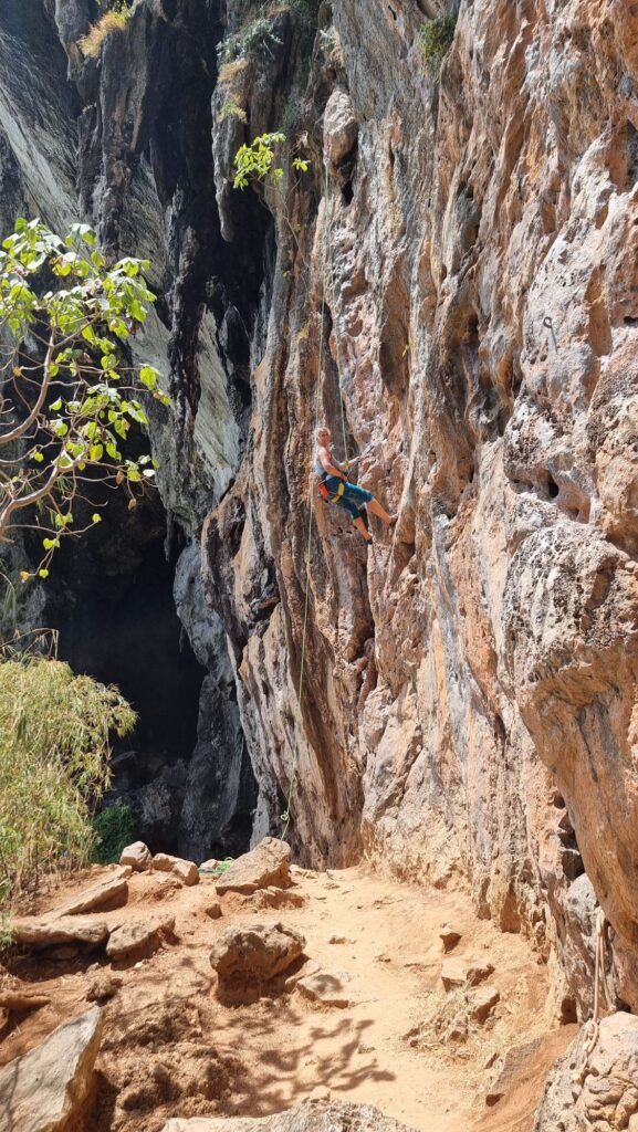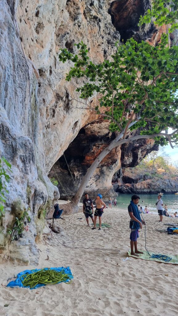 Wir laufen über den Schönsten der Strände, den Phranang Beach, am einen Ende gibts schöne Routen zum Bestaunen.