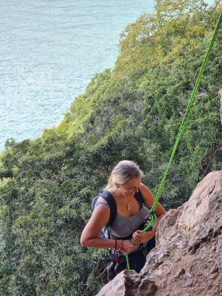 Am anderen Ende steigen wir selbst in die leichteste Route ein, die leider in der Sonne liegt.
