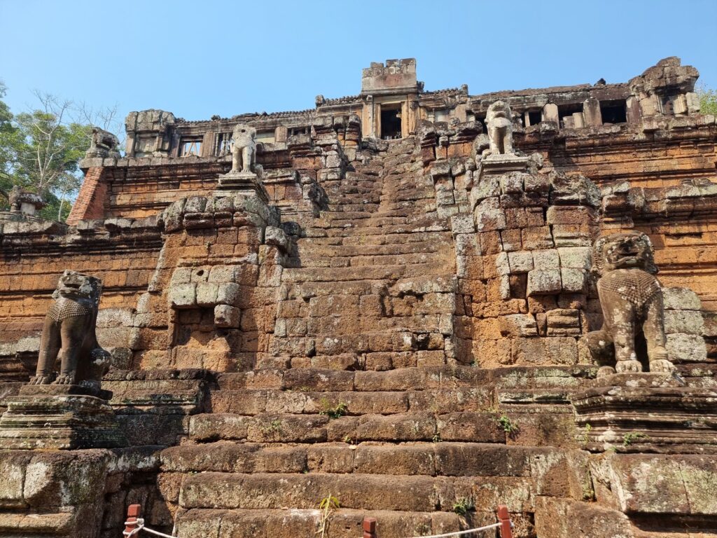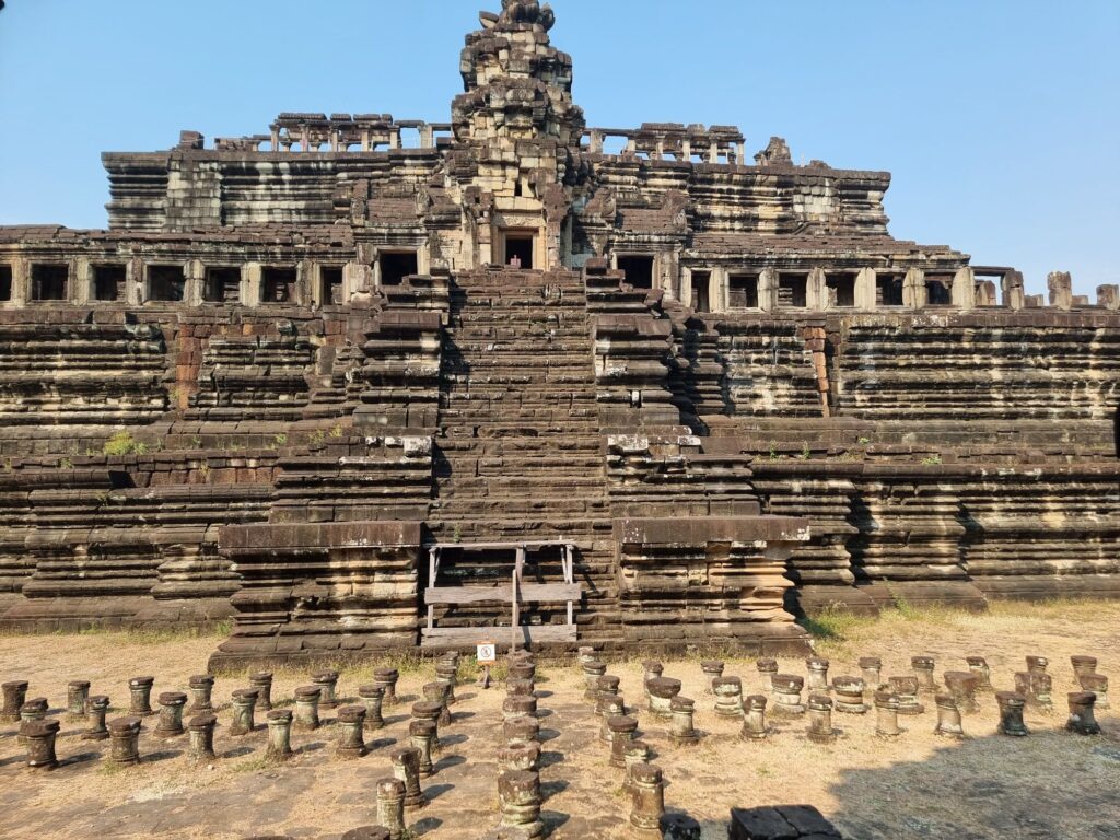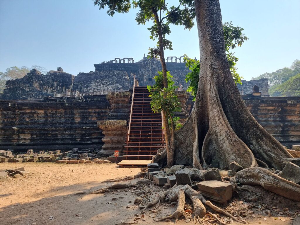 Zuerst fahren wir nochmal nach Angkor Thom. Diesmal schauen wir uns hier den Baphion Tempel an, das war der, der auseinandergebaut wurde und das Puzzle nicht mehr zusammengesetzt werden konnte… also, sie haben es versucht und irgendwann beschlossen, fertig zu sein!