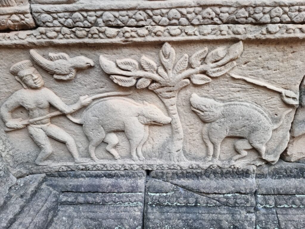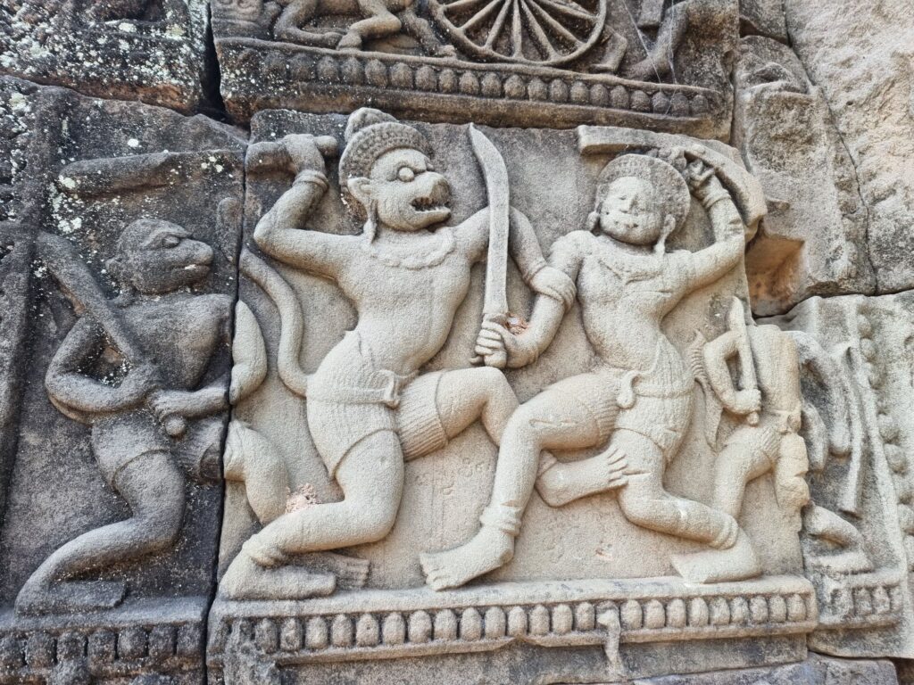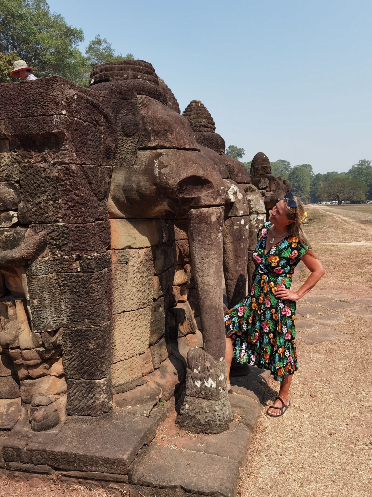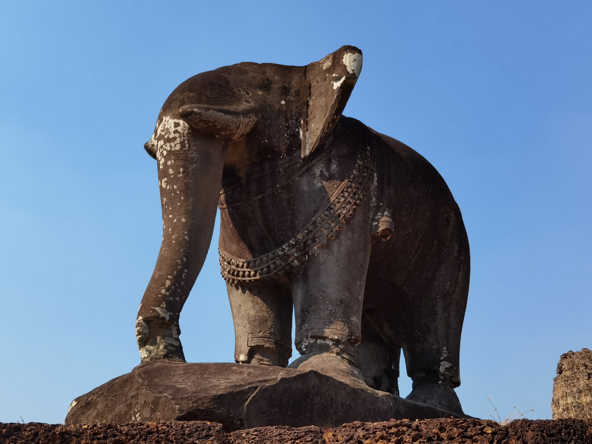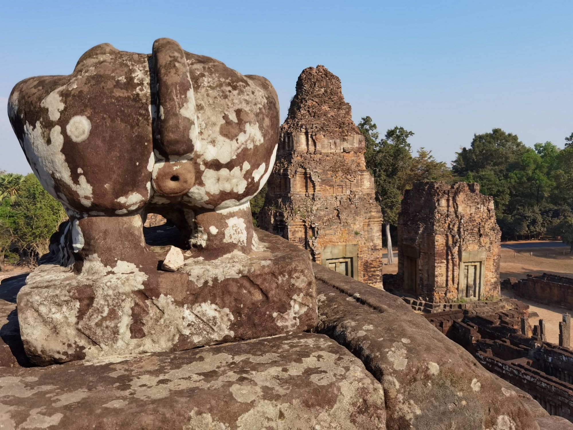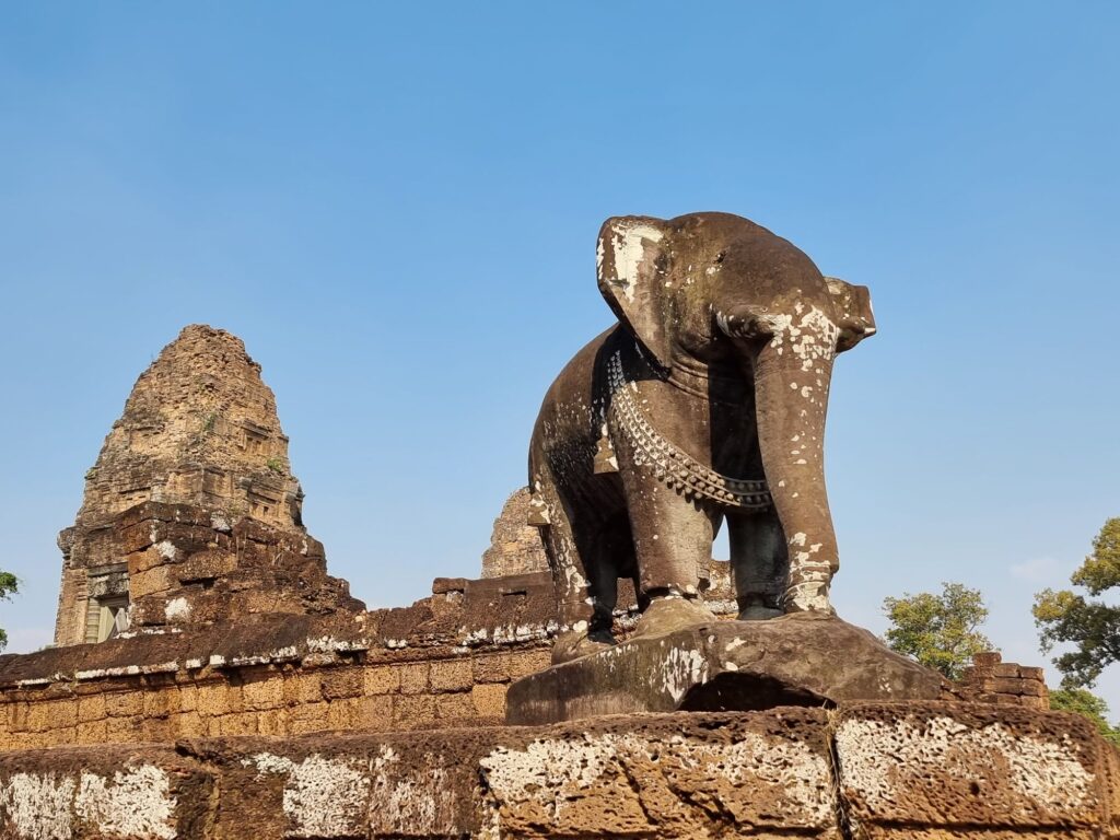 Auf dem Gelände steht auch der verfallenere Phimeanakas, hier ist von den Elefanten so wenig übrig, dass sie fast wie Schafe aussehen.