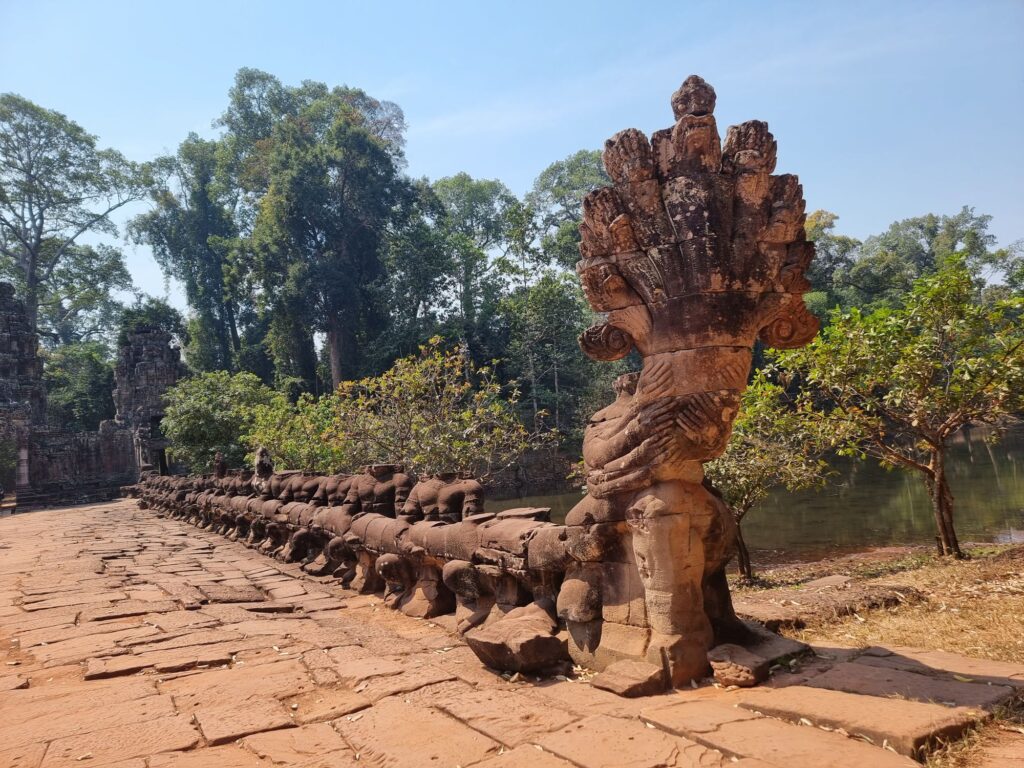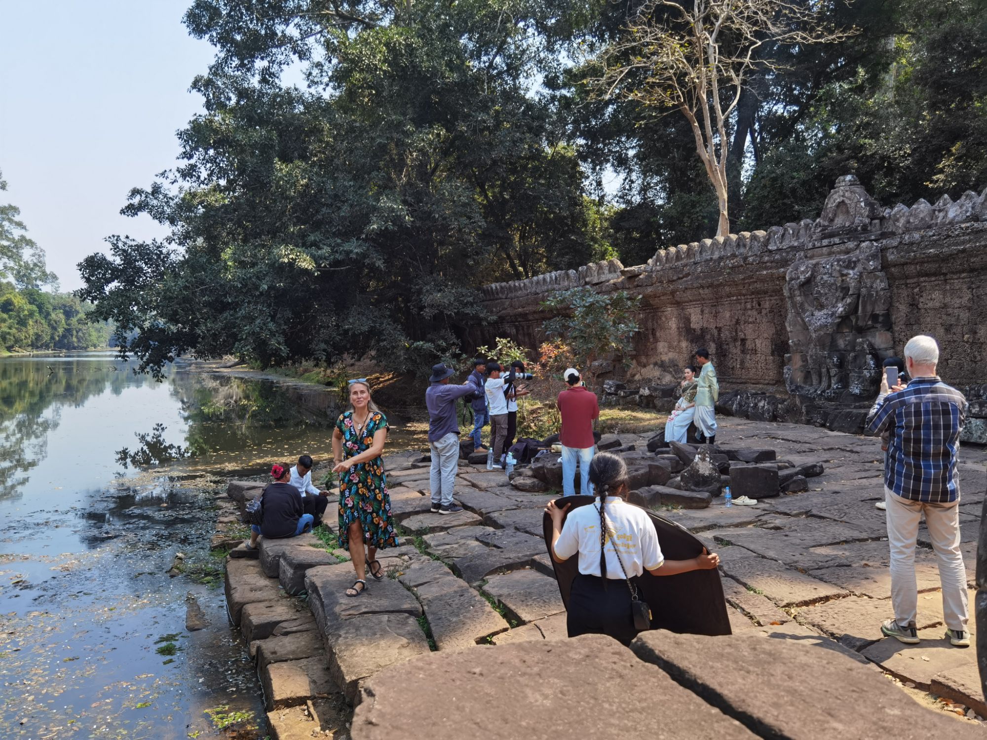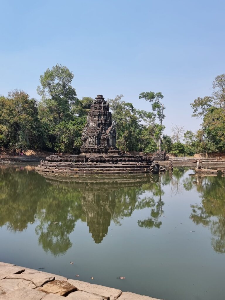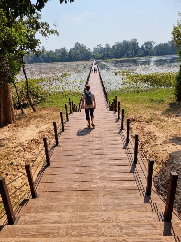 Jetzt kommt Neak Pean, ein Tempel im Wasser, hier ist besonders der Weg dorthin auf dem Steg eindrucksvoll.
