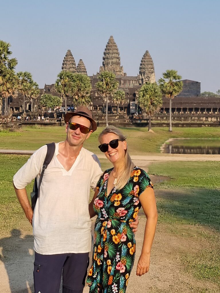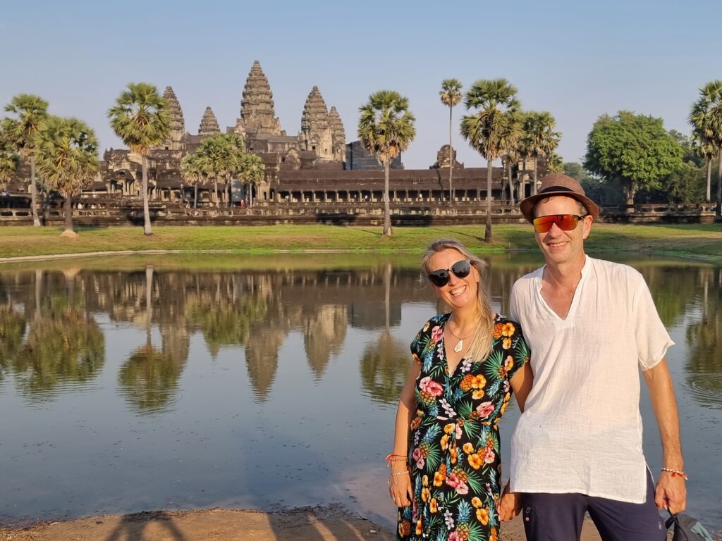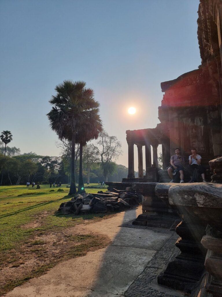 Es ist schon cool, nach jedem Tempel einfach ins Tuk Tuk zu steigen, wo der Fahrer schon mit gekühltem Wasser wartet. Zum krönenden Abschluss können wir jetzt Angkor Wat nochmal im Abendlicht sehen.