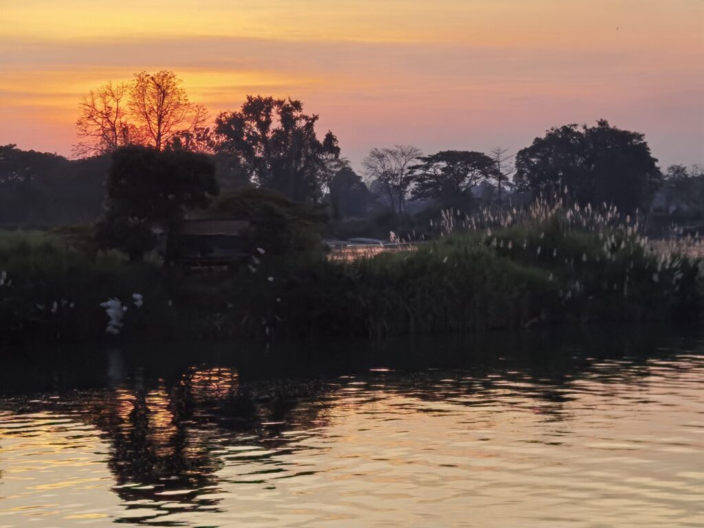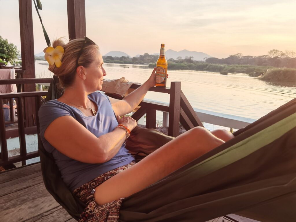 Rechtzeitig zum Sonnenuntergang zum letzten BeerLao auf unserer Terrasse!
