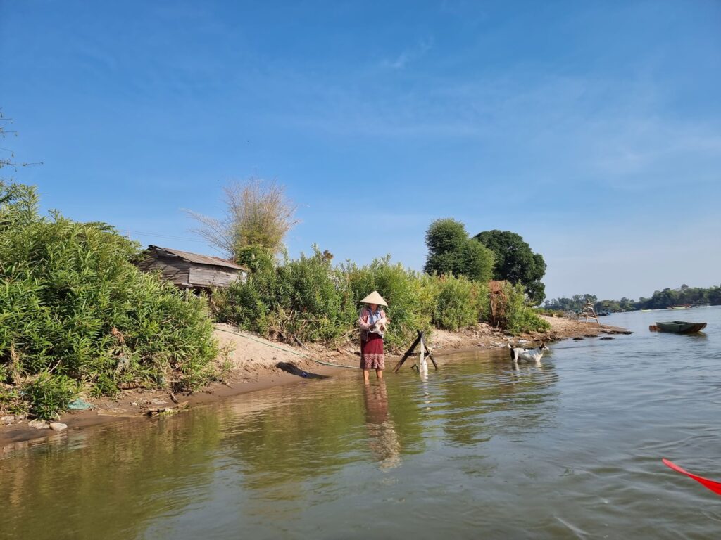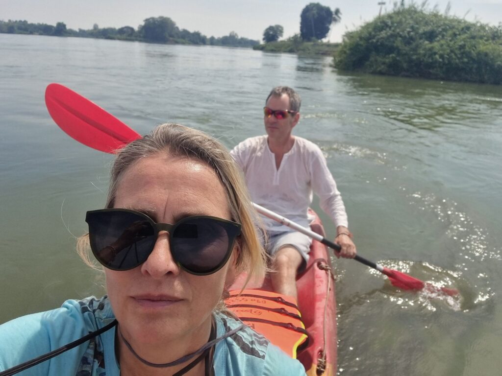 Wir lassen den Tag wieder langsam beginnen und verabreden uns mit dem Kajak- Vermieter “nach dem Frühstück”. Er versteht das und wir wollen ja auch keine elend lange Tour machen- der Mekong hat ganz gut Strömung!