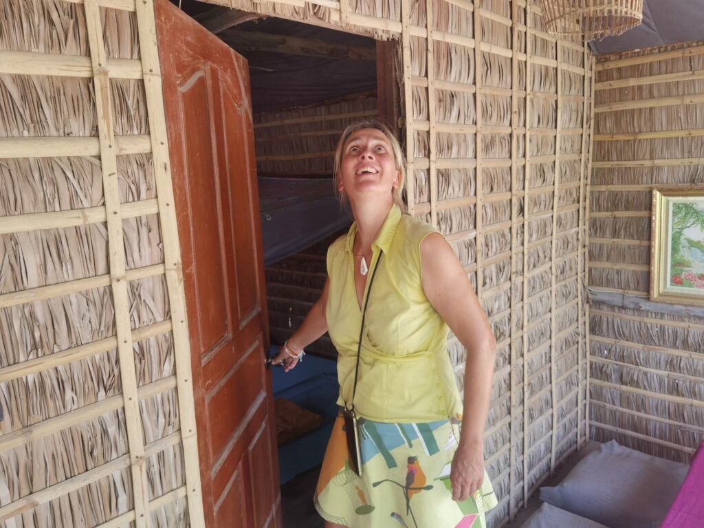 Am Busbahnhof sind alle aufgeregt dabei, Fahrgäste zu angeln. Das nervt und wir greifen uns jemanden per App und lassen uns in einer ruhigen Gegend absetzen, so die Bewertungen jedenfalls. Gleich die erste Tür rein, äh ne, aber fragt mal die Nachbarin! Und die ist total süß, erzählt uns ihre Lebensgeschichte, wie sie ein Restaurant von einem Spanier übernahm, der weg wollte, sie aber keine spanische Gerichte konnte. Wie die Gäste halfen, auch beim Abwasch und ihr Restaurant auf Platz 1 beim Tripadvisor kam. Dann Corona, Suff beim Mann, das Resto zusammengebrochen.. jetzt baut sie die Reste zu Unterkünften aus und wir waren die ersten Gäste!