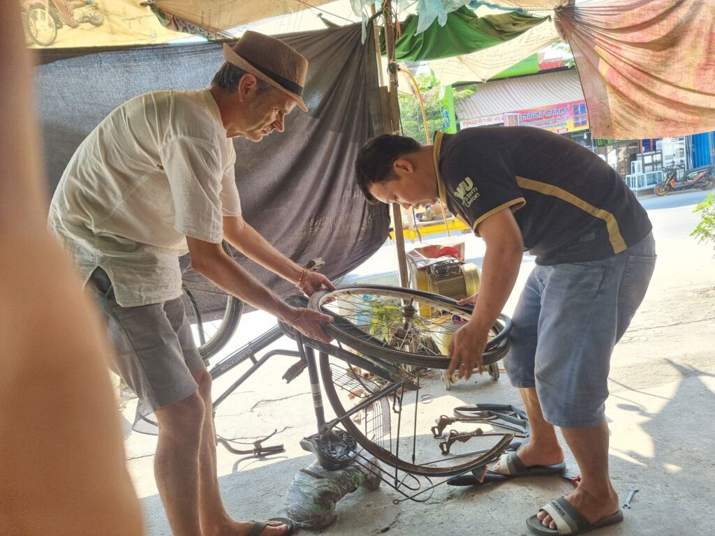 Zur Erkundung der Stadt gibt sie uns 2 Räder, die sich kaputt gestanden hatten. Um die Ecke gibt es aber eine Werkstatt, kein Problem!