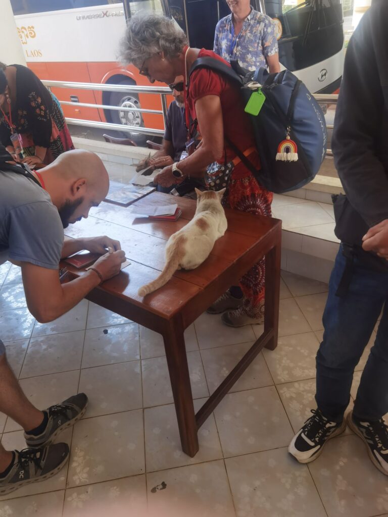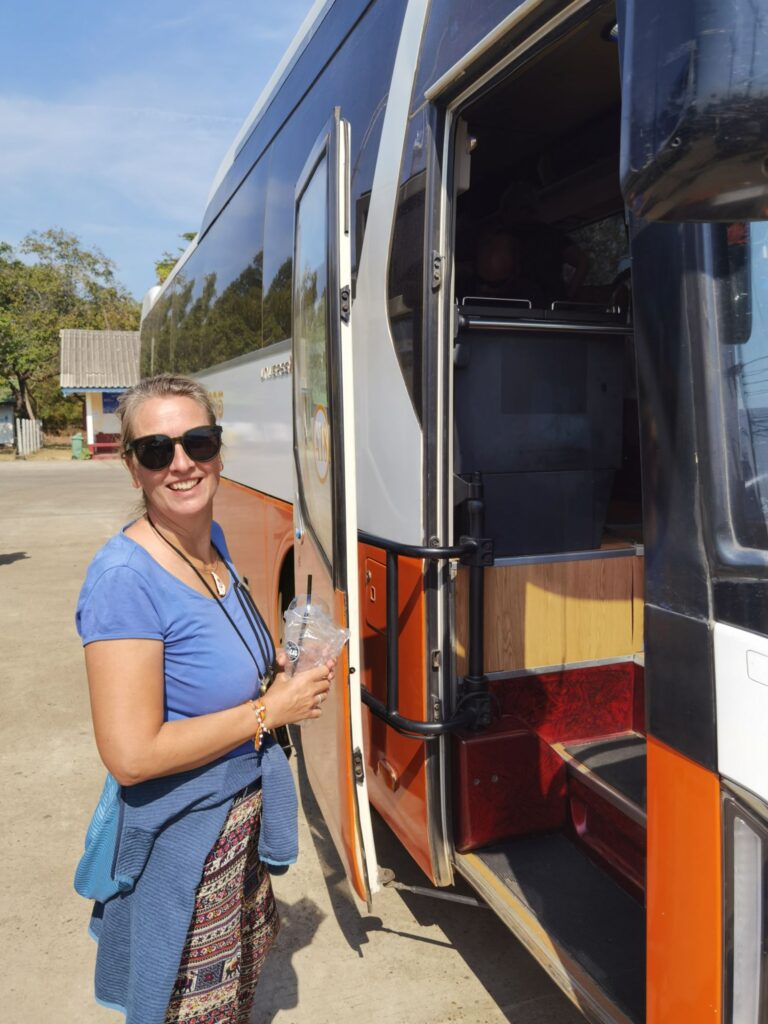 Bye bye Laos, es war so schön, dass wir kaum wieder weg wollten. Aber wir ziehen weiter. Und zwar in einem hypermodernem Reisebus einer neuen Reisegesellschaft, die fleißig mit Rabatten wirbt und sogar eine Stewardess beschäftigt, die uns durch die Grenze schleust und Verpflegung verteilt!