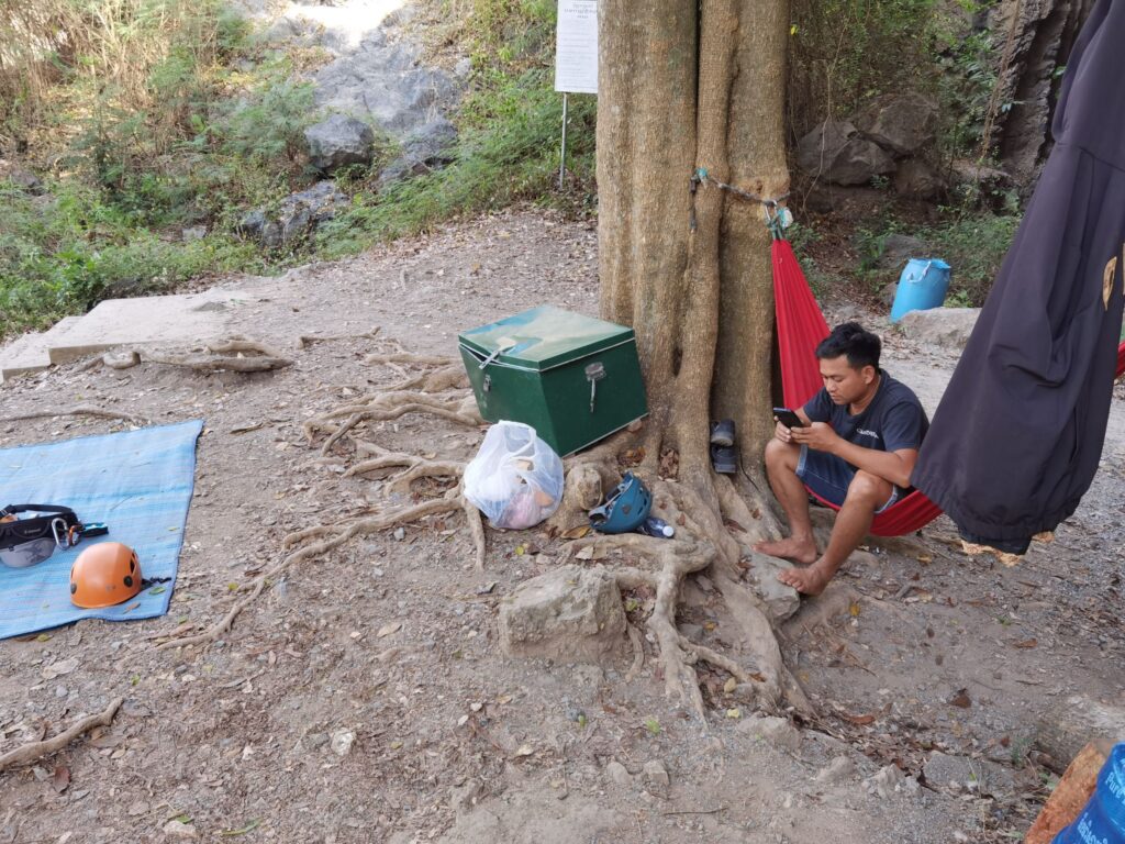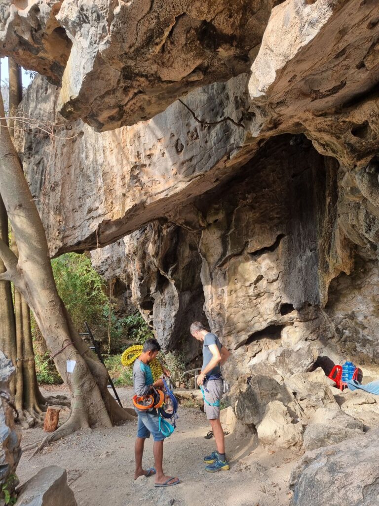 Seit Corona hat “Climbodia” keinen Kletterladen in der Stadt mehr, sondern nur noch einen Internetauftritt und eine Kiste mit Ausrüstung am Berg. Mangels Community wird der Crag nur von der Firma gewartet und dafür auch für Touriprogramme wie Einsteigerkurs, Abseiling und so genutzt.